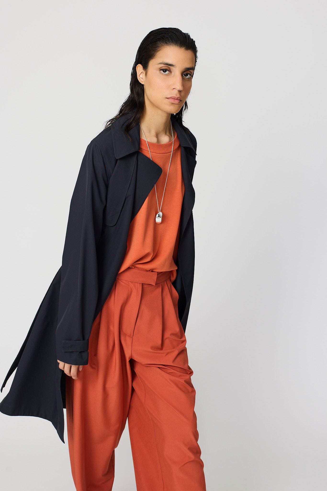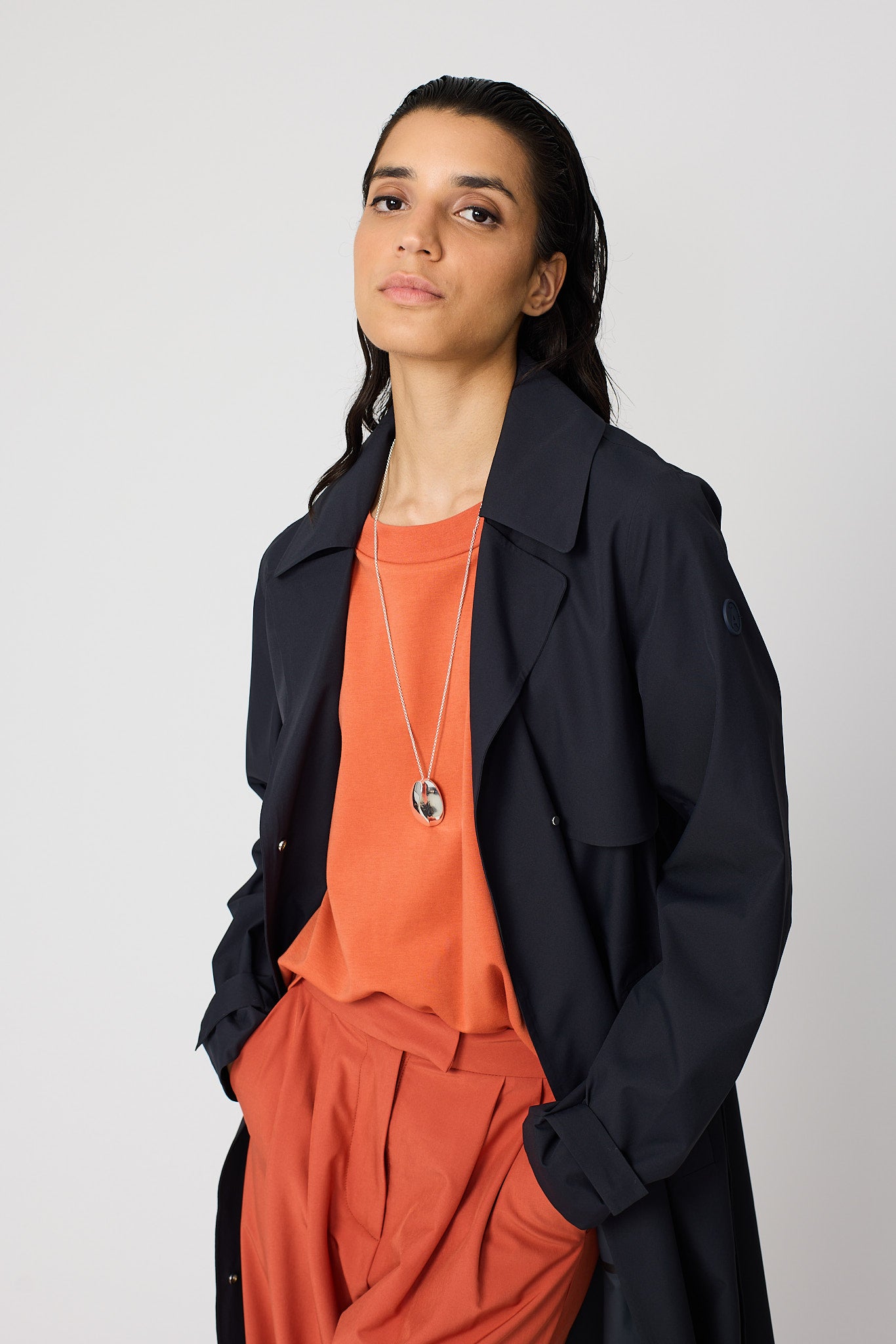 The Tage seamless trench is made from twill polyester fabric, it's 100% waterproof and it features all seams taped for superior protection. Details include back and front vents, concealed snap fastenings for closure, an adjustable waist with belt and a removable drawstring hood. Perfectly tailored, Tage is a sleek style with high-functionality.