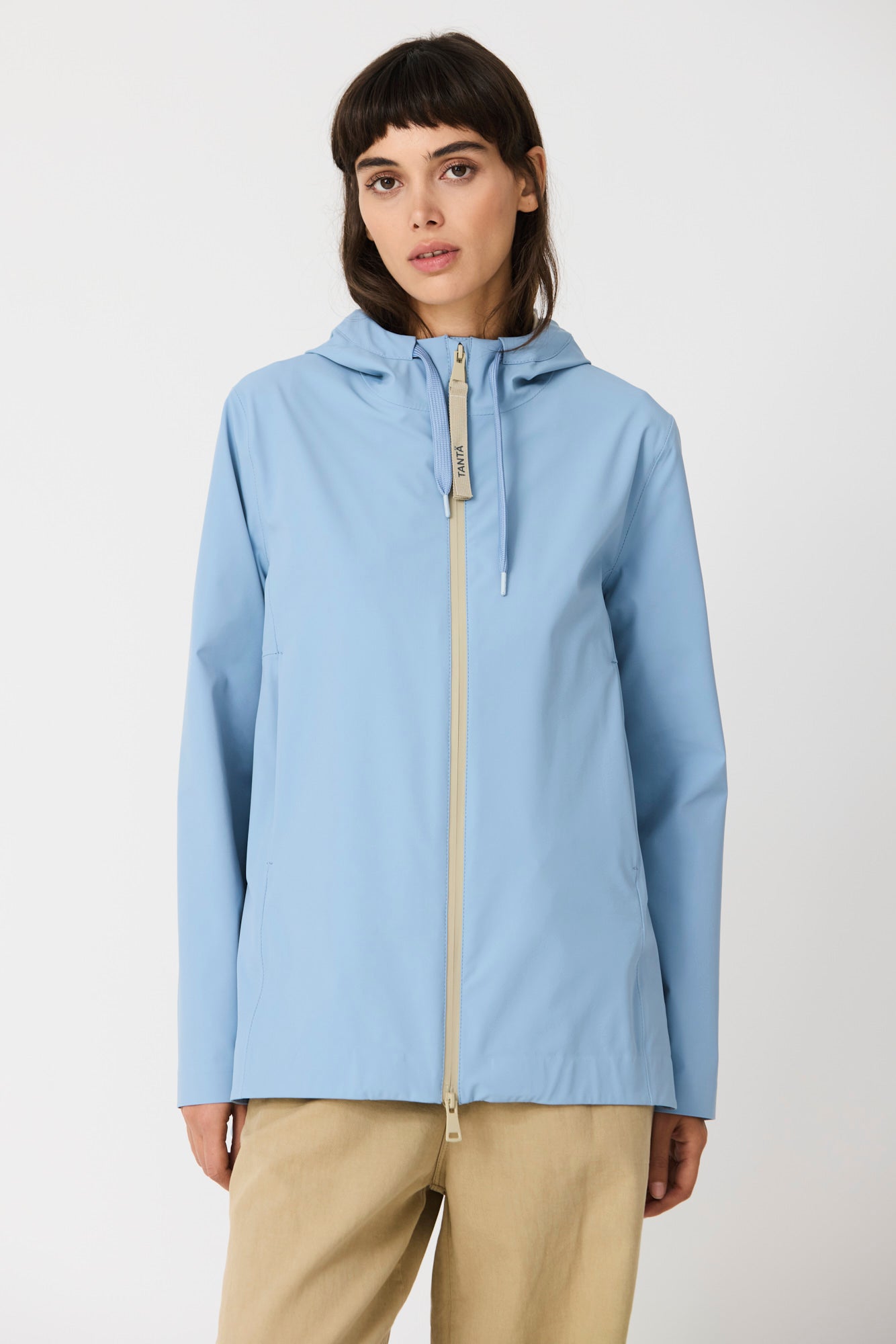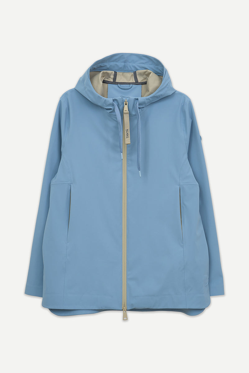 Jala is a minimalist jacket crafted from lightweight, high-quality softshell. The fabric combines breathability, flexibility and comfort, creating a light feel that moves naturally with the body. The design is clean and understated, with no visible seams at the cuffs and a rounded hem that gives the silhouette a fluid, modern feel. 100% waterproof with all seams taped, jala blends refined simplicity with Tantä’s signature functionality.