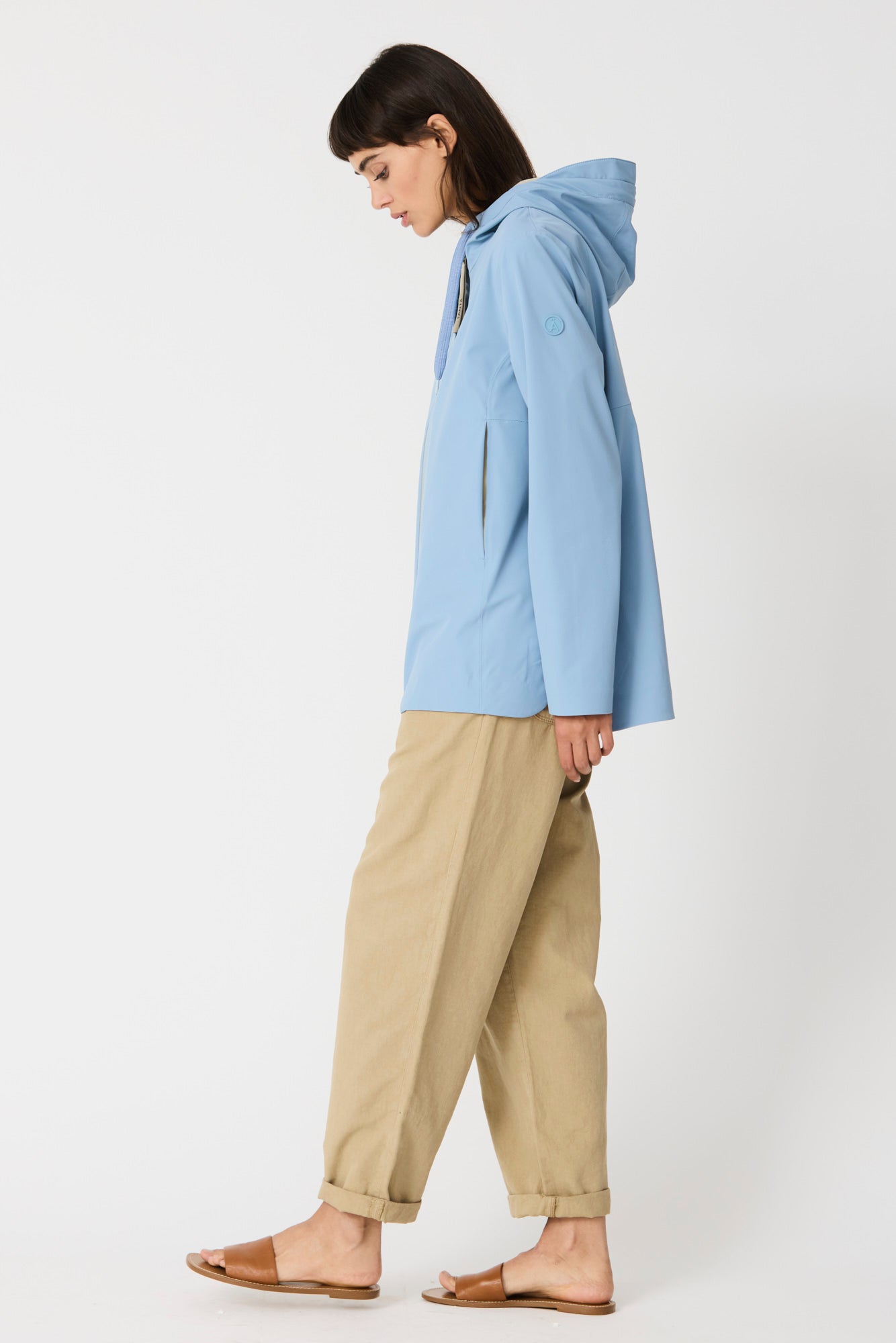 Adjustable hood with drawstring, with integrated visor and high collar.