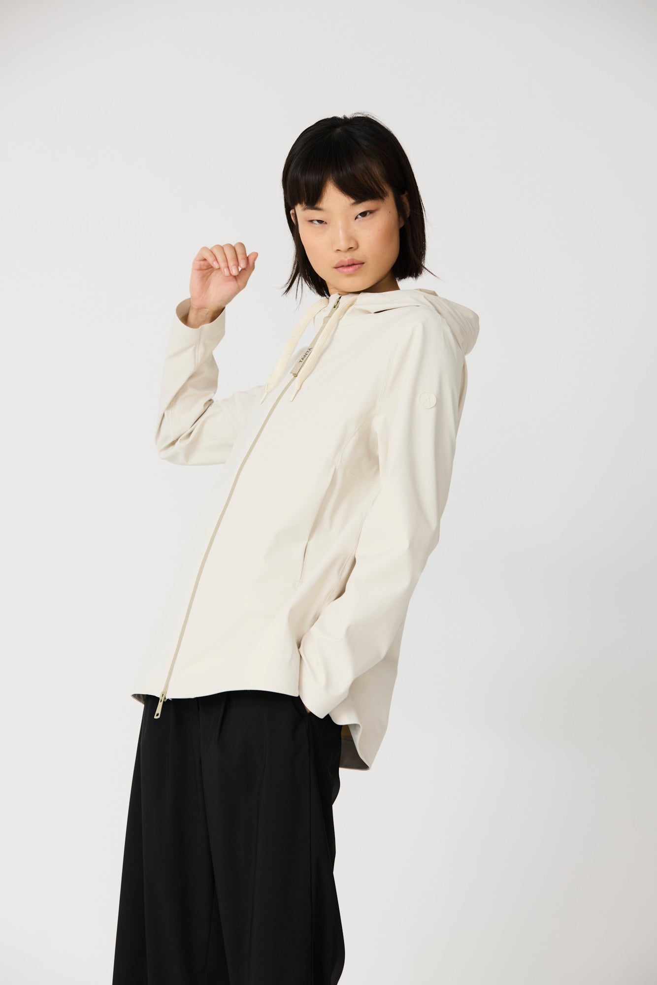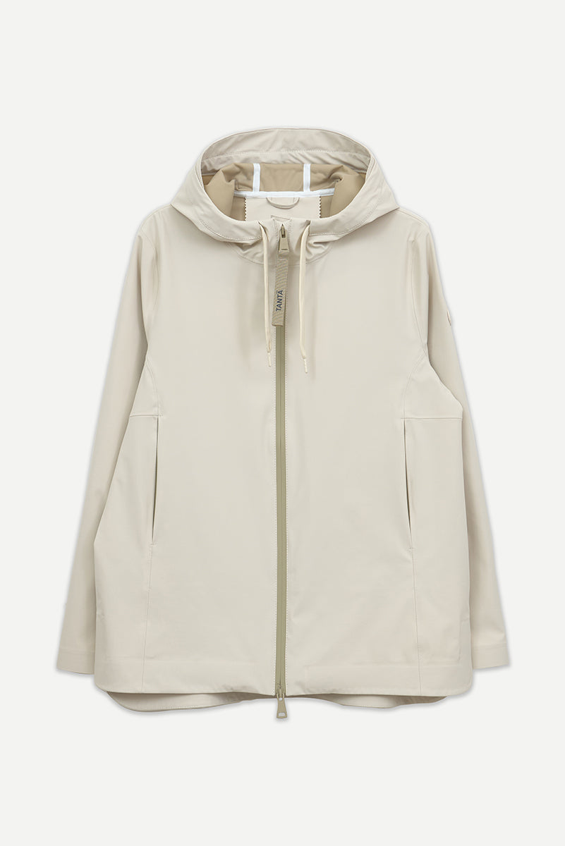 Jala is a minimalist jacket crafted from lightweight, high-quality softshell. The fabric combines breathability, flexibility and comfort, creating a light feel that moves naturally with the body. The design is clean and understated, with no visible seams at the cuffs and a rounded hem that gives the silhouette a fluid, modern feel. 100% waterproof with all seams taped, jala blends refined simplicity with Tantä’s signature functionality.