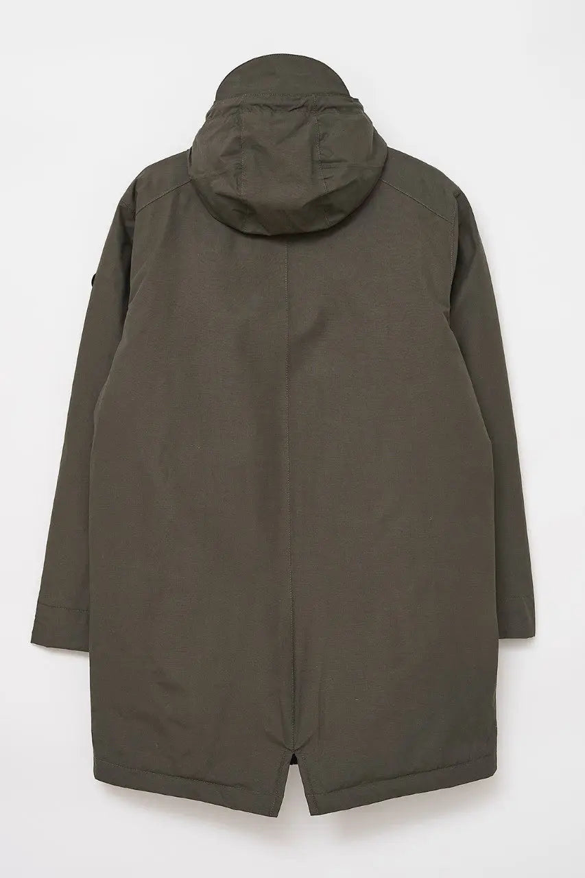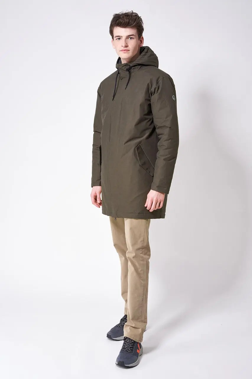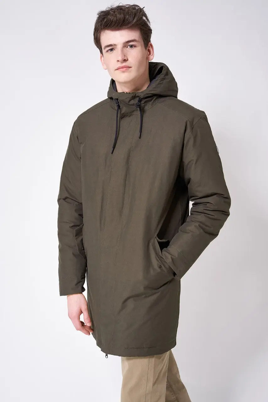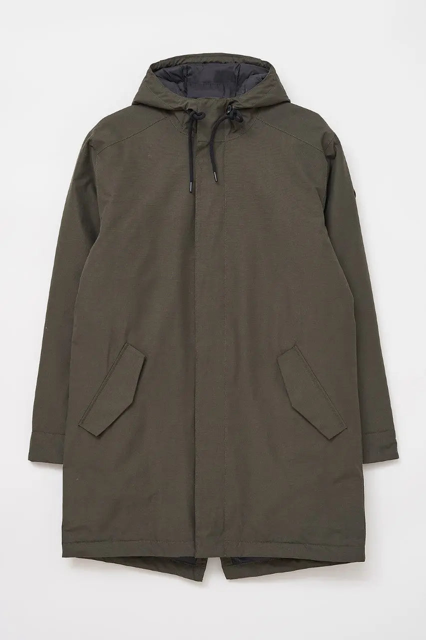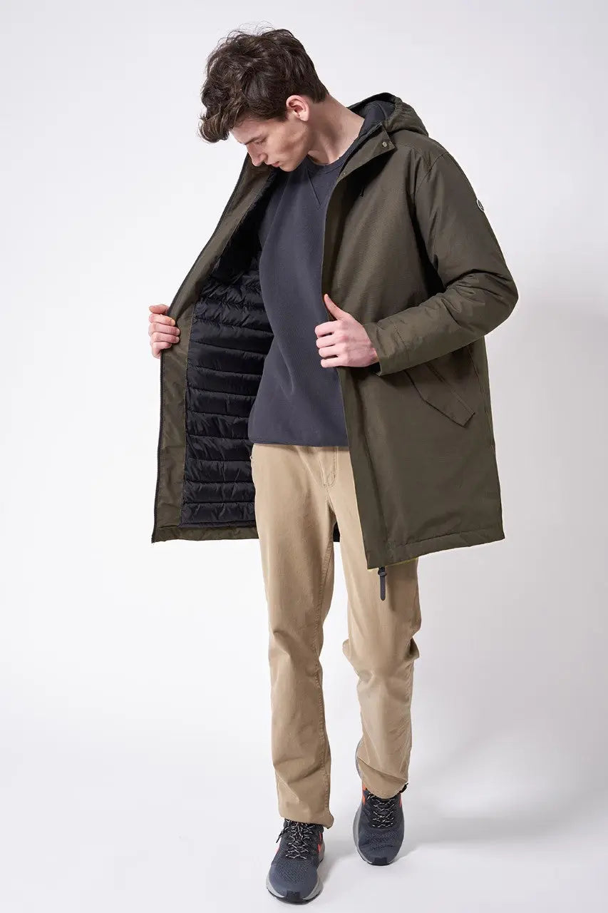 La parka o abrigo impermeable Bingu es un modelo clásico reinterpretado en una sofisticada versión street. Confeccionada con un tejido exterior de mezcla de algodón duradero y un forro de plumón de algodón, cuenta con todas las costuras selladas para una protección superior. Con un corte regular y un estilo depurado, presenta bolsillos con solapa y una abertura trasera con cordón ajustable.
