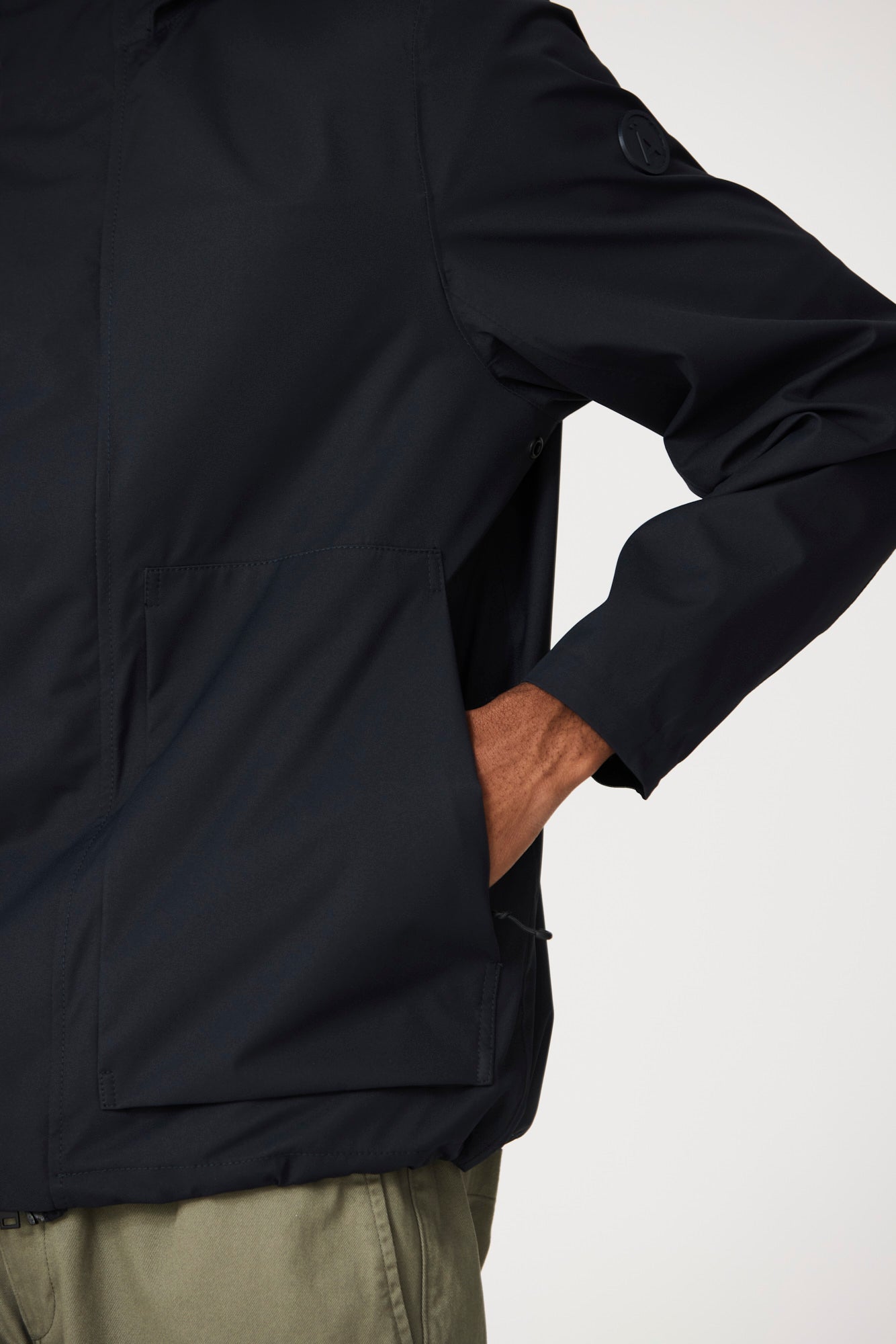 Bolsillos plastrón sin costuras, con fuelle en la parte inferior.