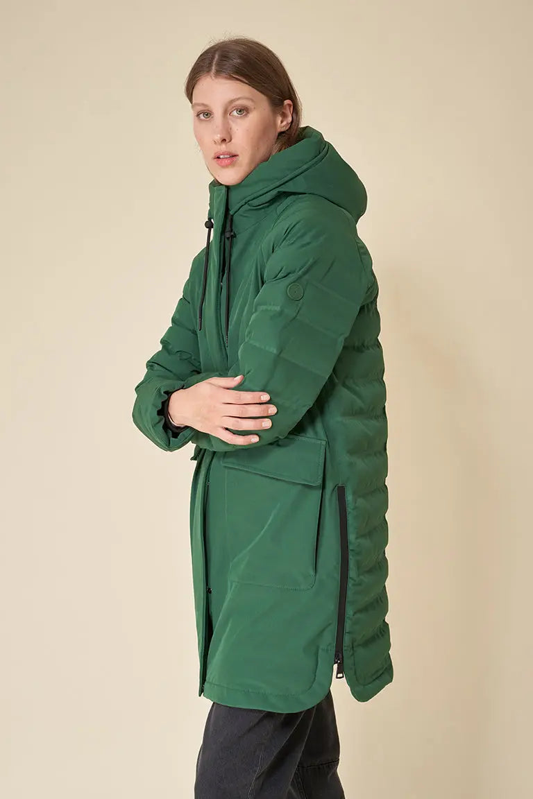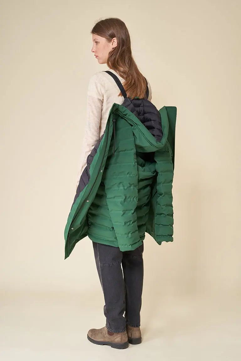 El abrigo 100 % impermeable acolchado Bassal de mujer, te acompañará en los días más fríos del invierno. Confeccionado con nuestro icónico tejido Softshell, cuenta con una capa aislante transpirable y sin plumas para ayudar con la ventilación en las largas caminatas. Tiene bolsillos plastrón con solapa y cremalleras impermeables en los laterales. Las cintas interiores de mochila para llevar la prenda añaden funcionalidad.