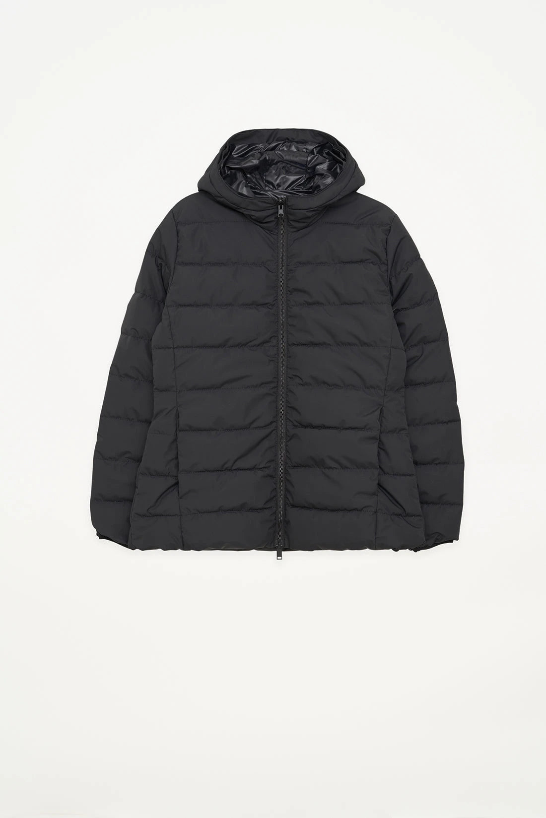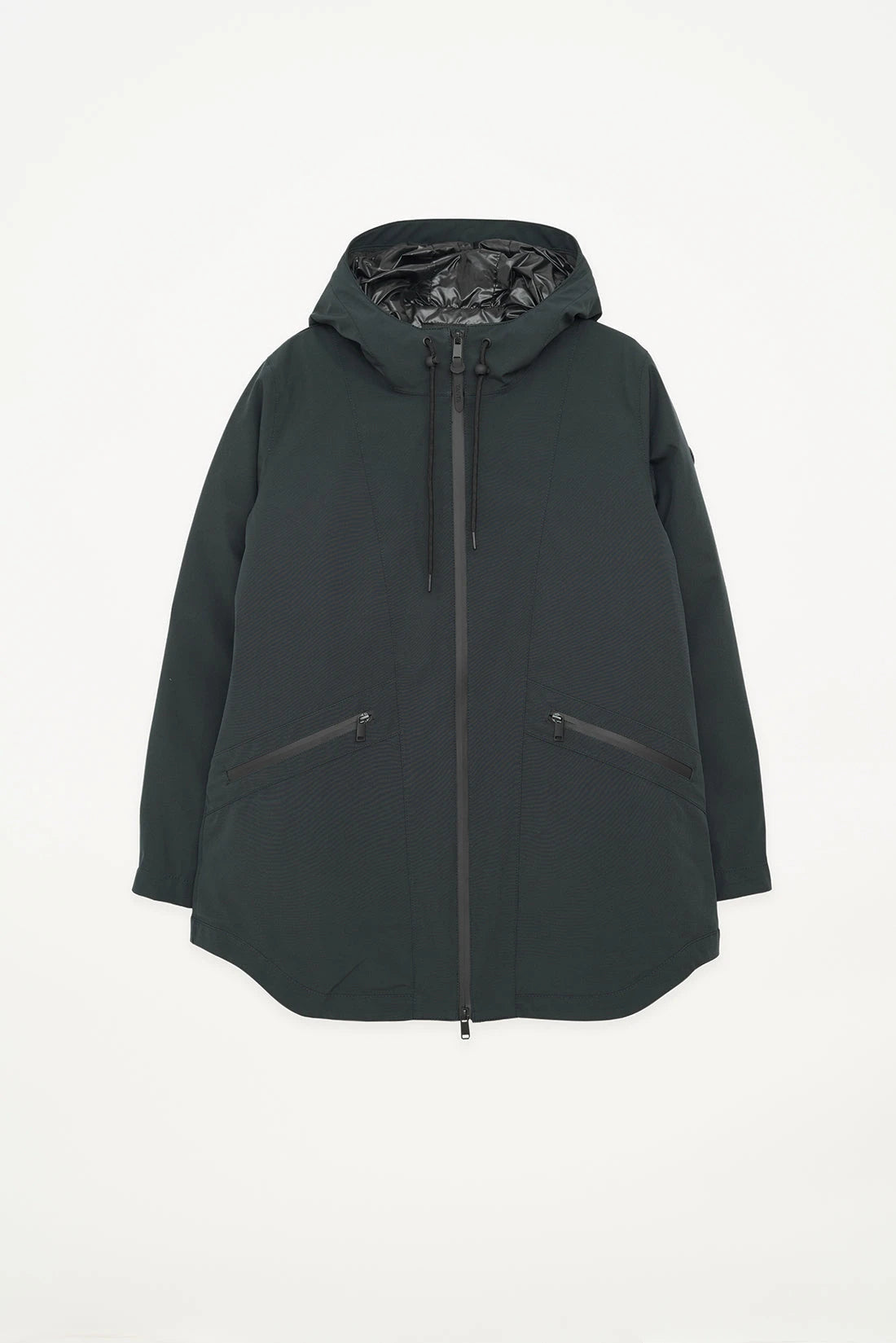 - Capa exterior de poliéster 100% reciclado con aislamiento de fibras de poliéster entrelazadas.