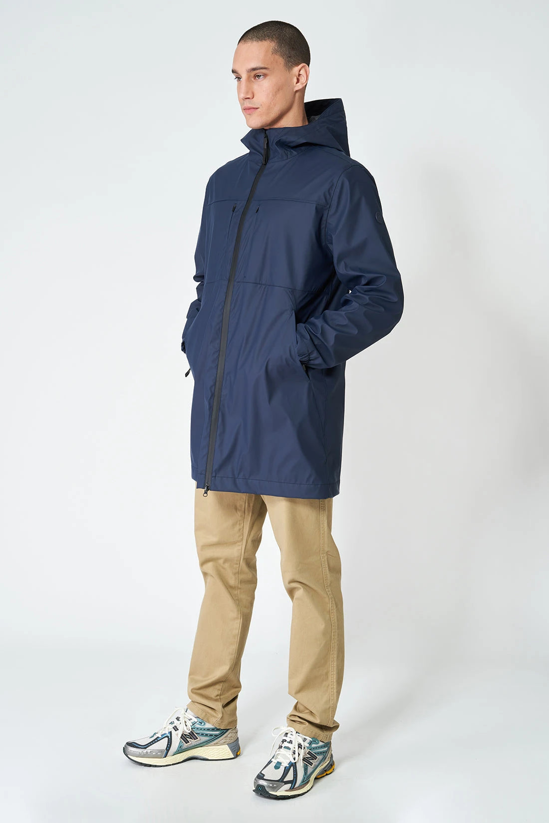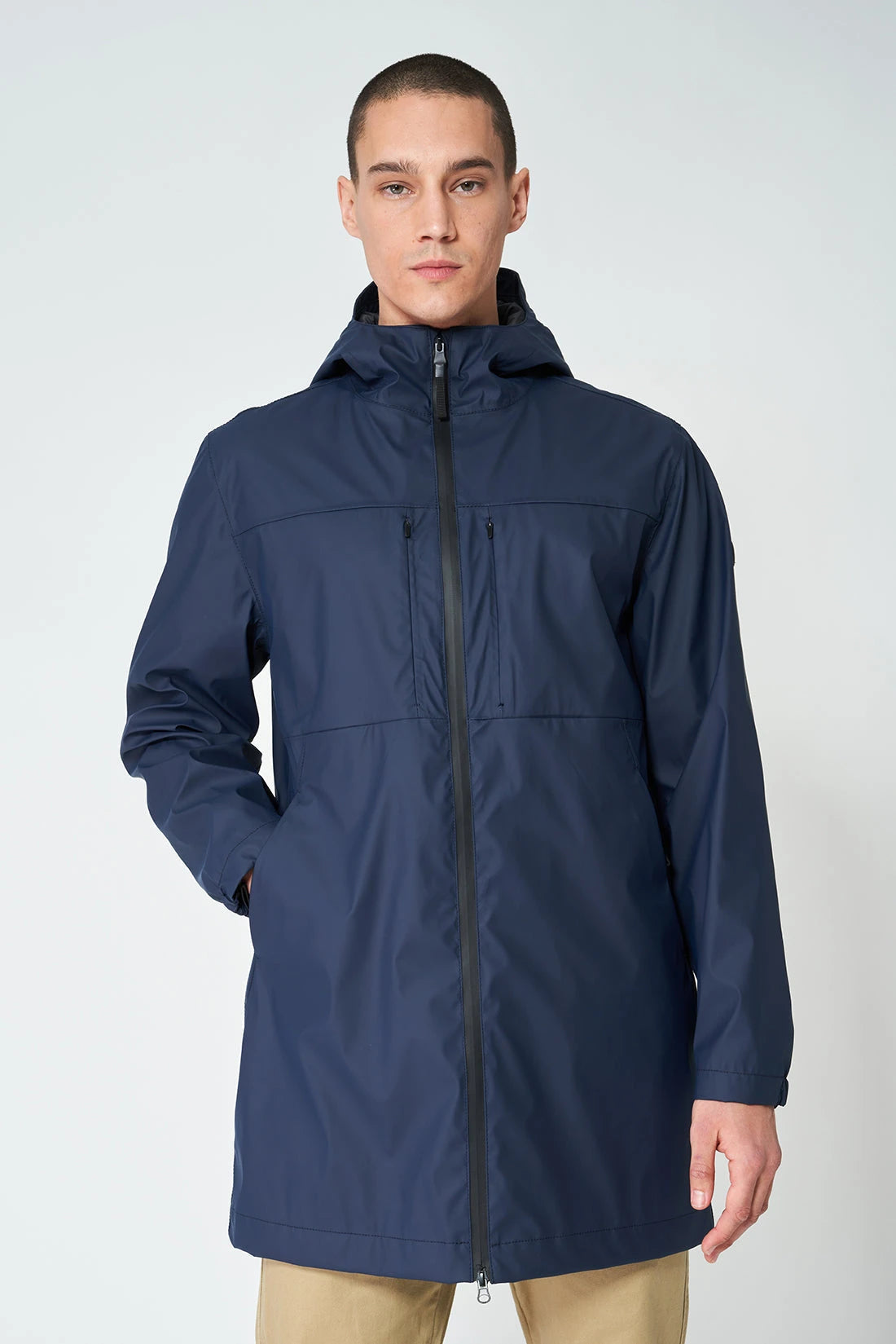 - Bolsillos en costura con cremalleras impermeables ocultas.