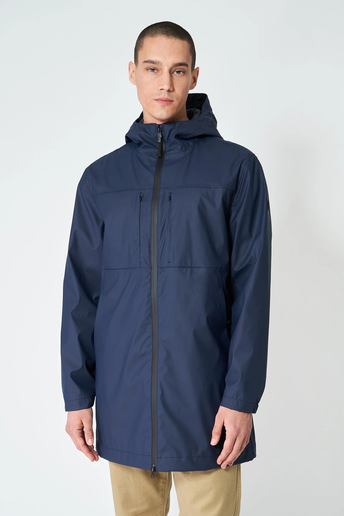 - Cremallera impermeable de doble cursor en la parte delantera.
