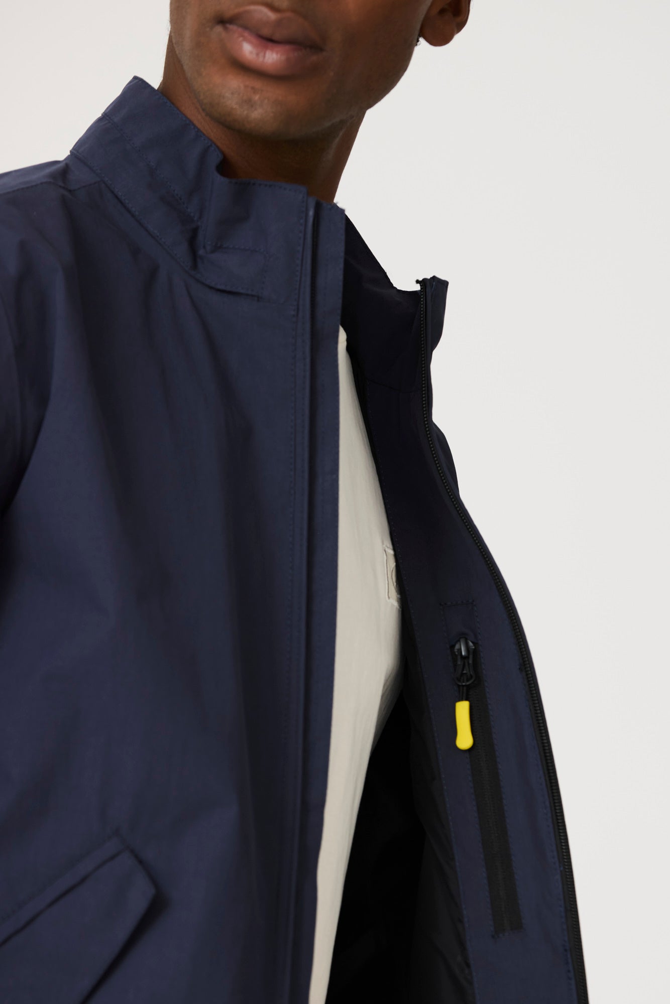 Bolsillo interior en el pecho con cremallera.
