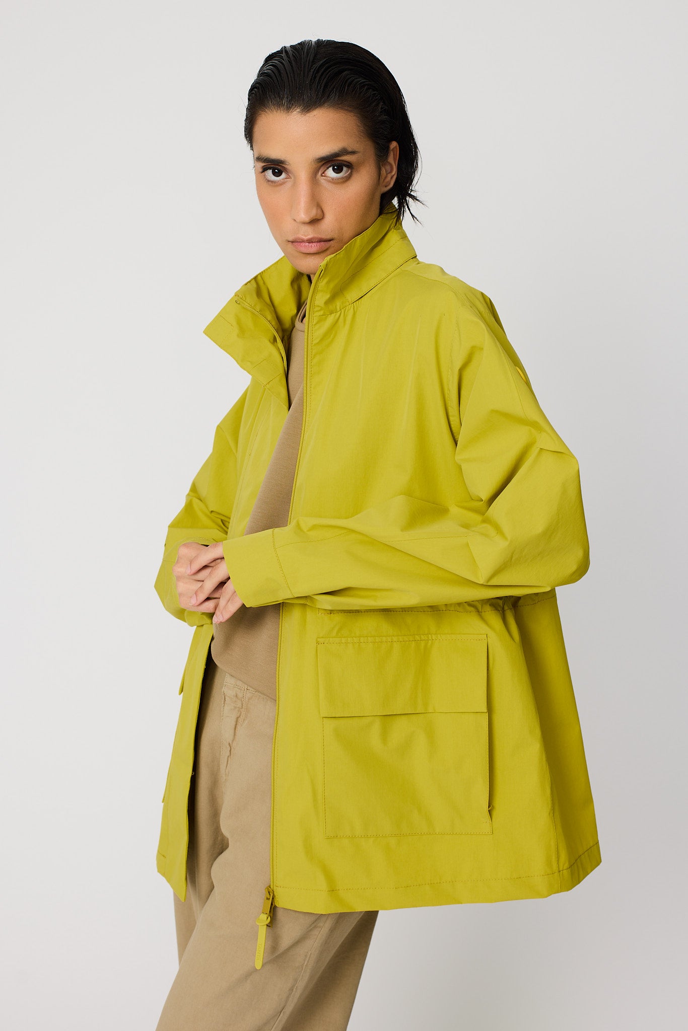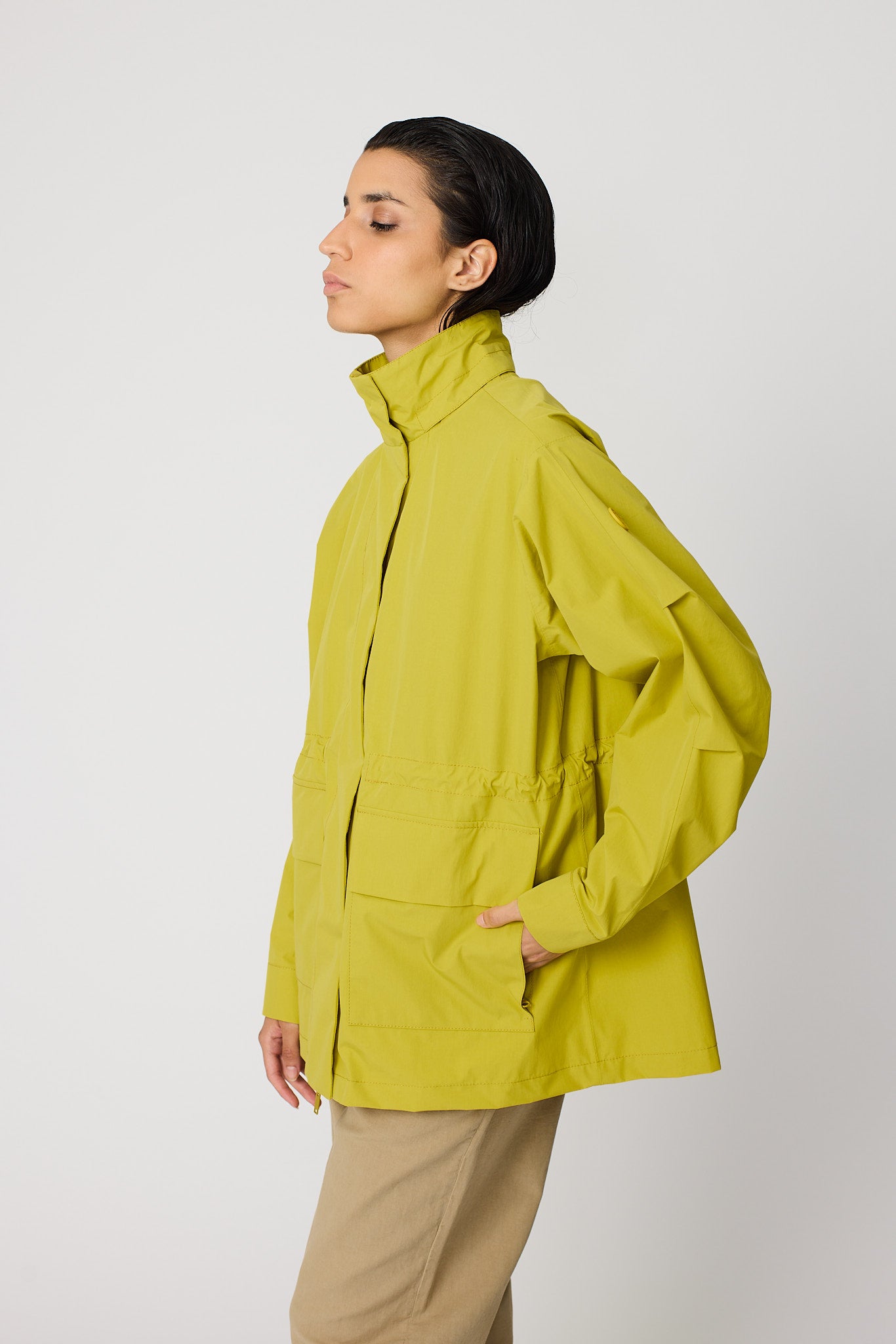 Mizu es una chaqueta inspirada en la clásica sahariana, confeccionada en algodón ligero que aporta estructura manteniéndose transpirable. Diseñada con una silueta oversize moderna, es una auténtica prenda de moda para llevar durante toda la primavera, llueva o no. 100 % waterproof, con todas las costuras selladas, ofrece una protección adicional sin renunciar al estilo. Se completa con capucha desmontable, logrando un look refinado y contemporáneo.