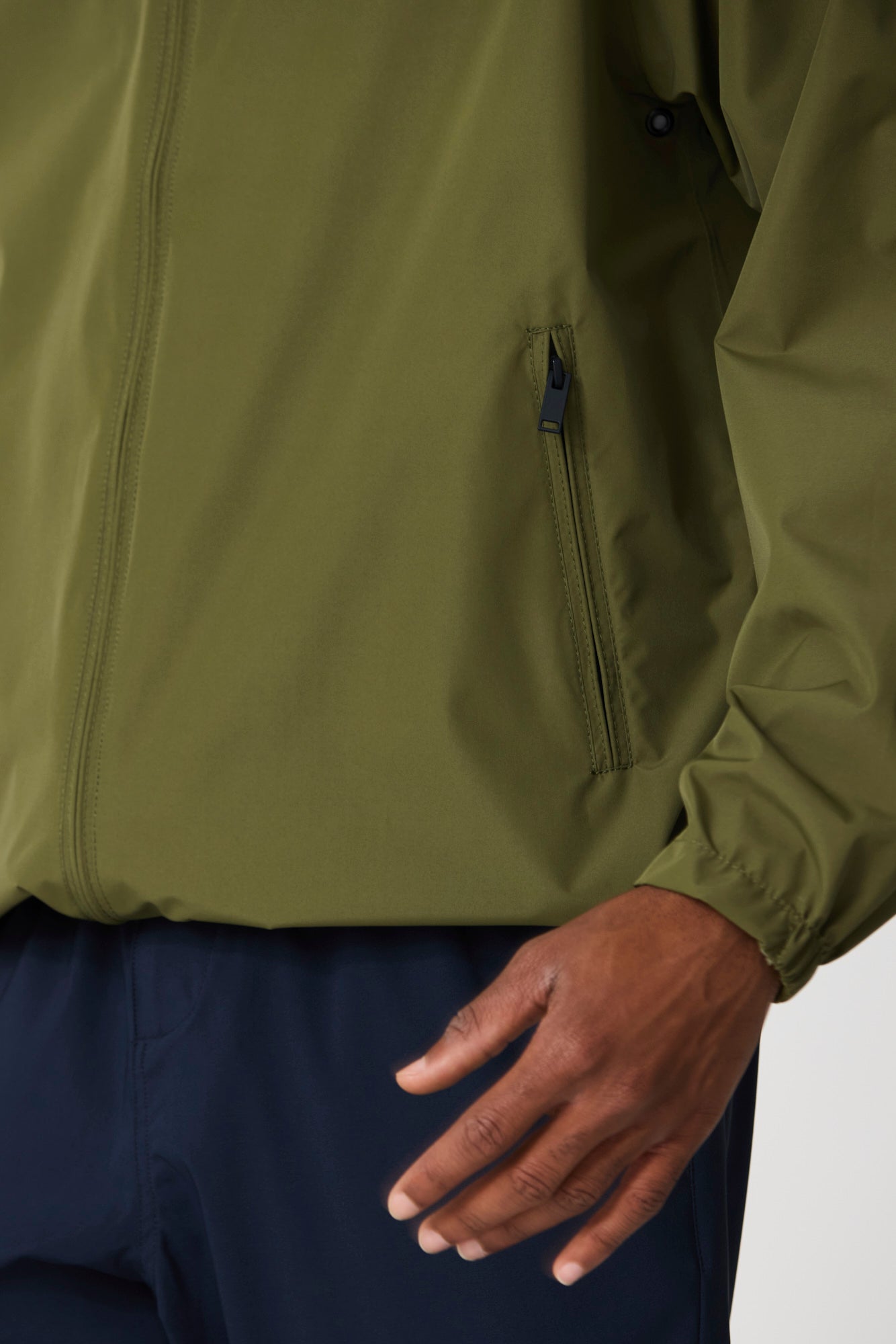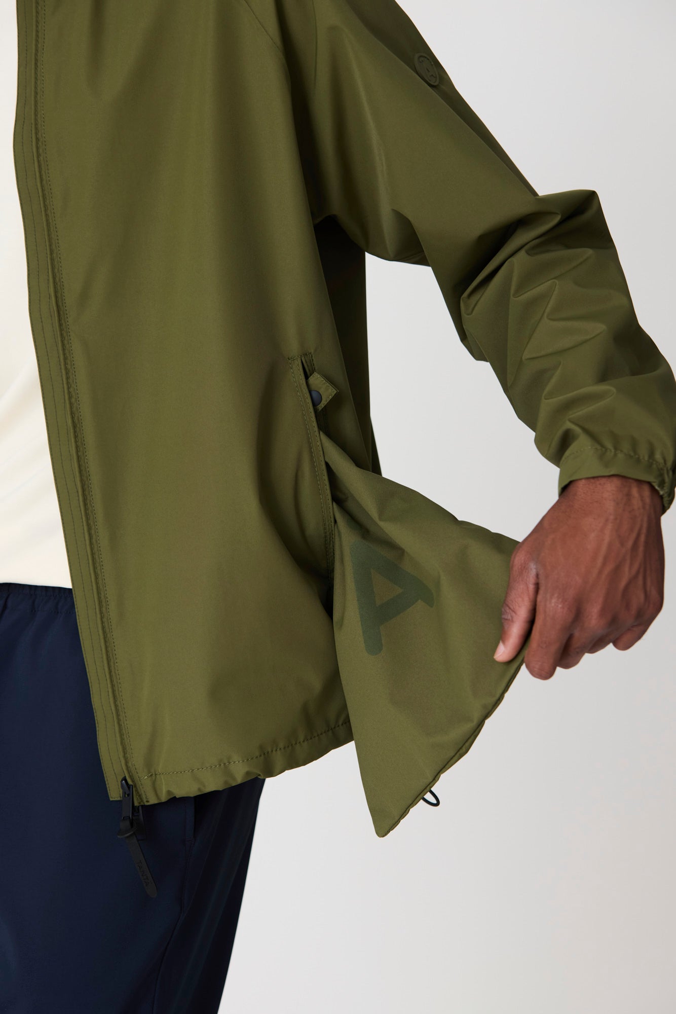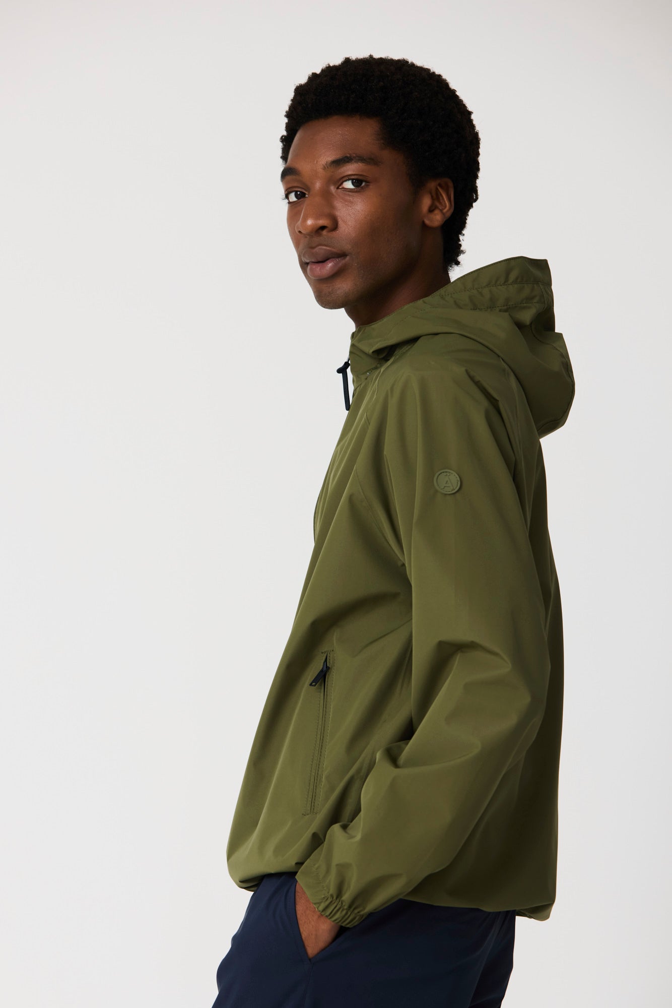 Muggio es una chaqueta impermeable ligera y plegable, diseñada para acompañarte allá donde vayas. Confeccionada en tejido 100 % reciclado, es transpirable, práctica y fácil de llevar. Se pliega y guarda en su propio bolsillo, lo que la convierte en la compañera de viaje perfecta. Rematada con cremallera frontal impermeable, Muggio es 100 % waterproof, con todas las costuras selladas, combinando funcionalidad con un estilo fresco y sin esfuerzo, pensado para una vida en movimiento.
