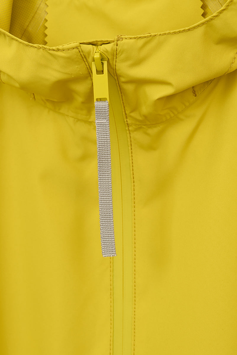 Imiq es un impermeable joven y desenfadado confeccionado en tejido 100 % reciclado, diseñado con una silueta amplia y voluminosa. Los cortes de patronaje en las mangas aportan riqueza y movimiento, mientras que el pliegue en la espalda refuerza su forma relajada. Ligero y transpirable, se completa con una cremallera frontal impermeable y es 100 % waterproof, con todas las costuras selladas, combinando sostenibilidad, estilo y funcionalidad en un diseño fresco y contemporáneo.