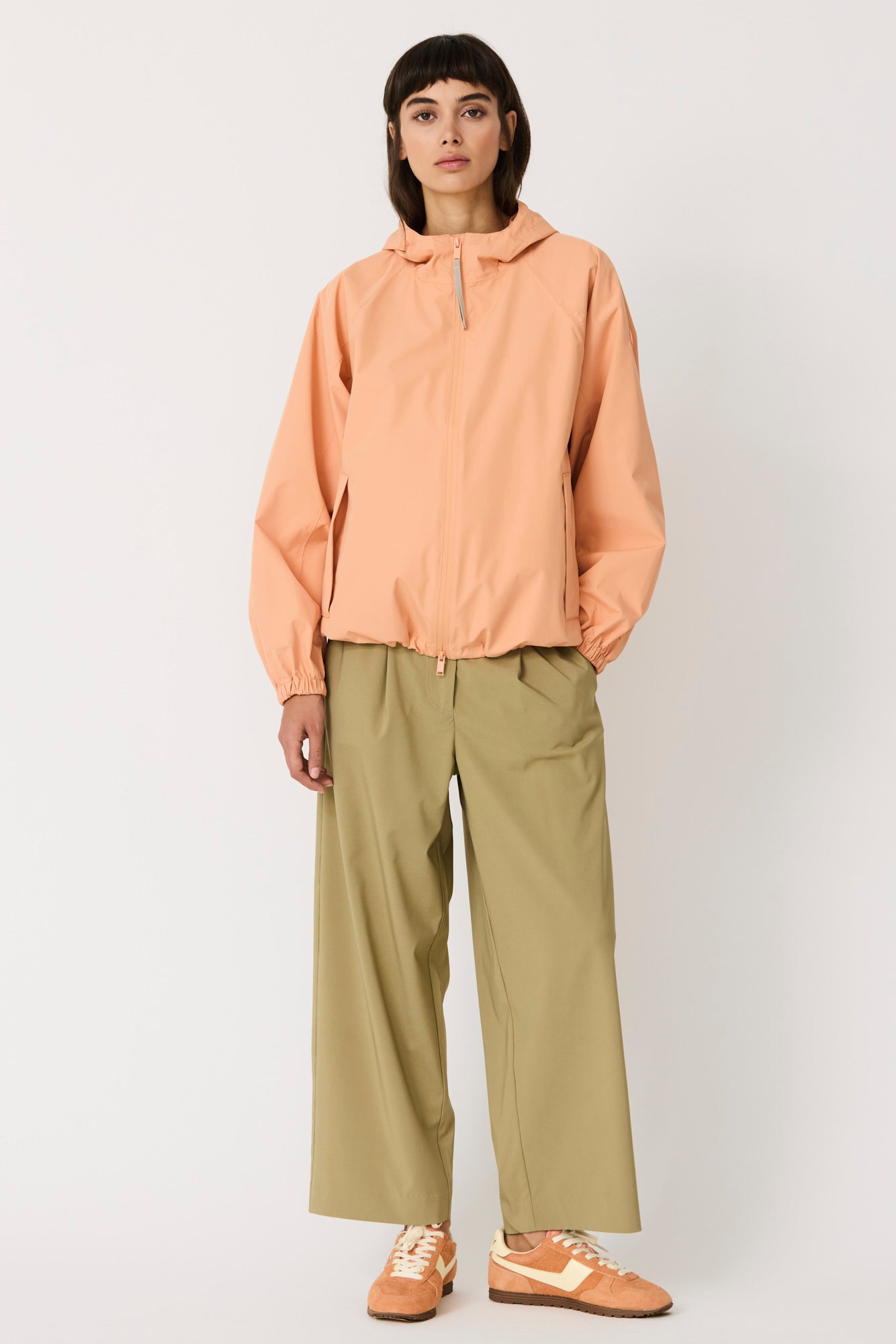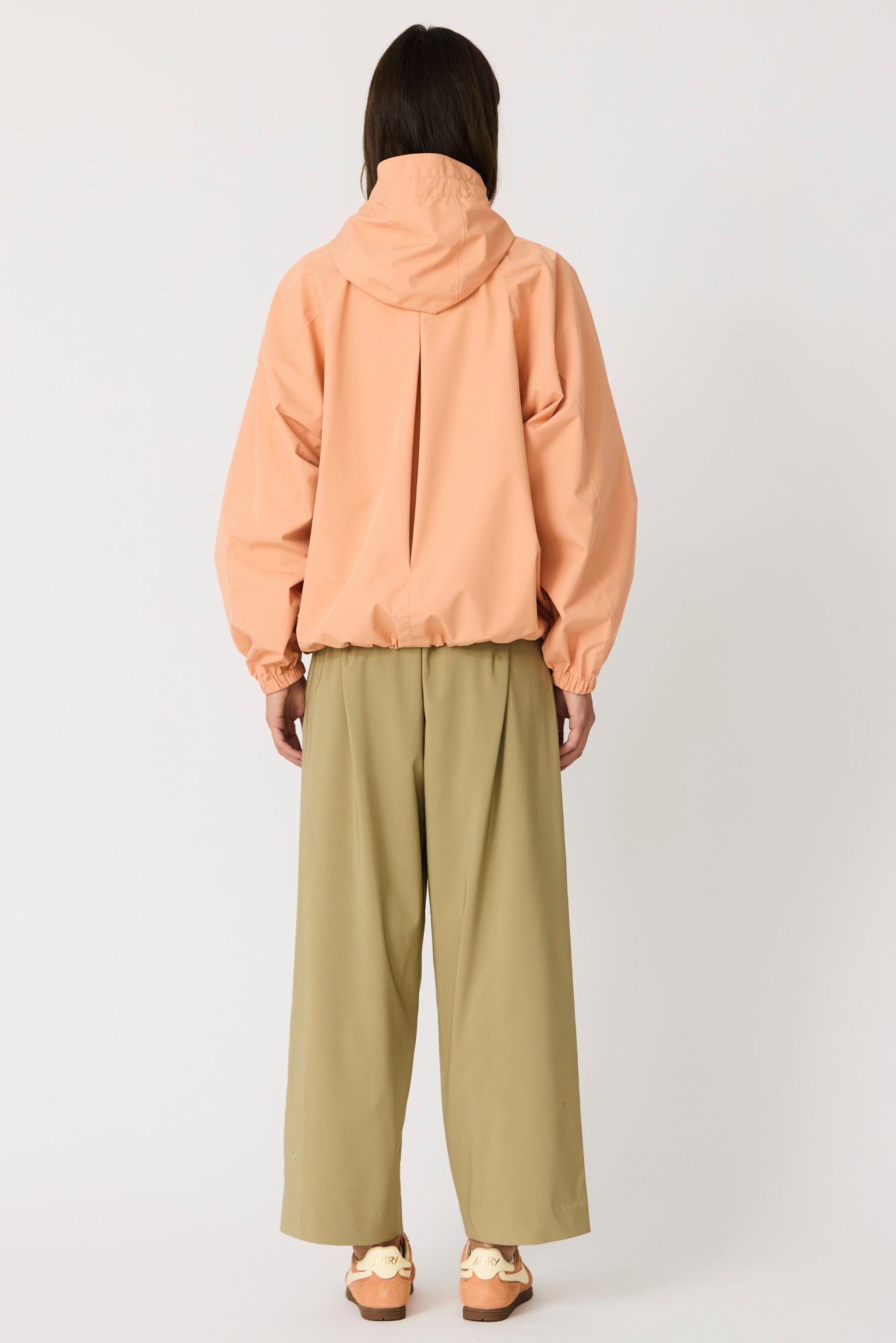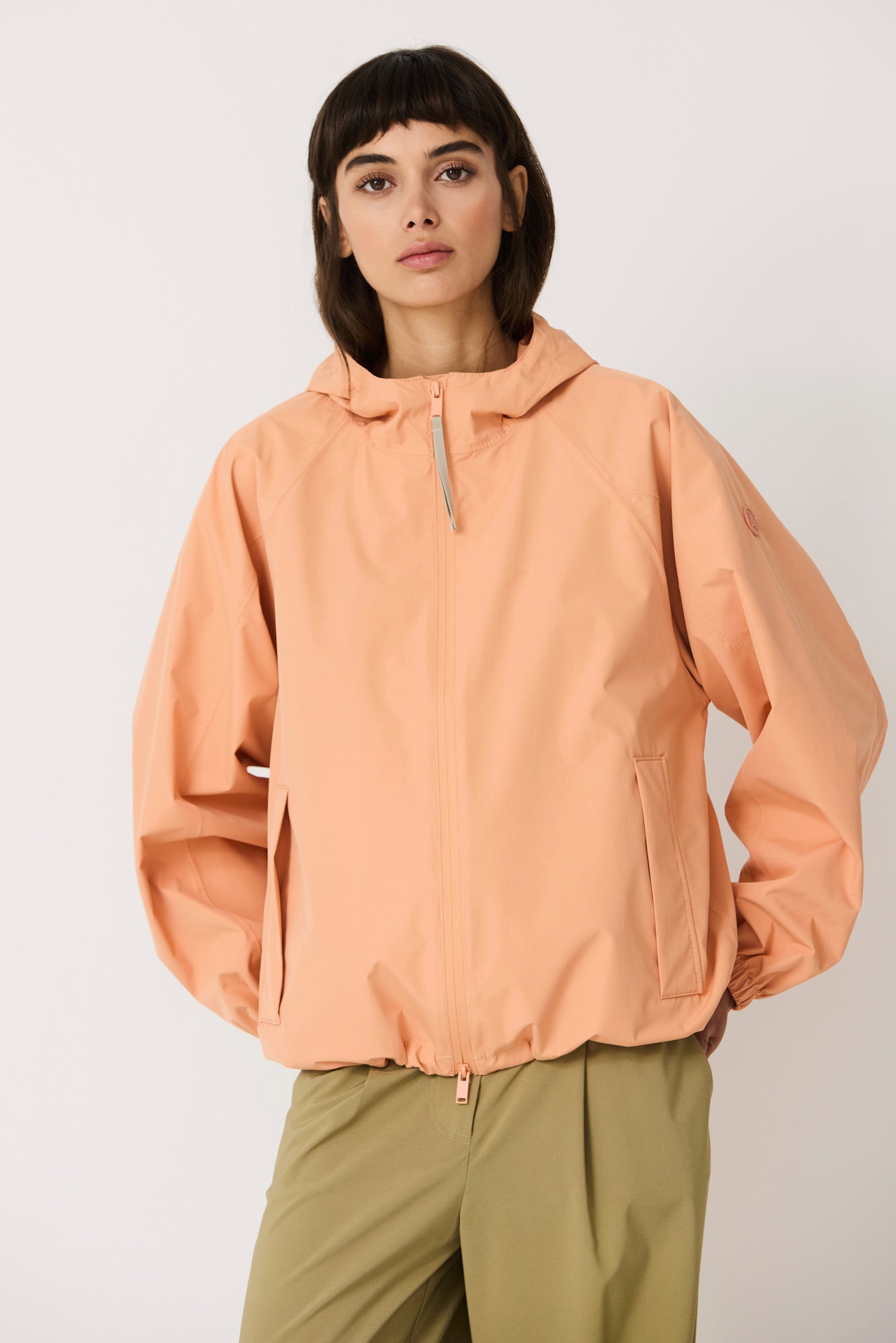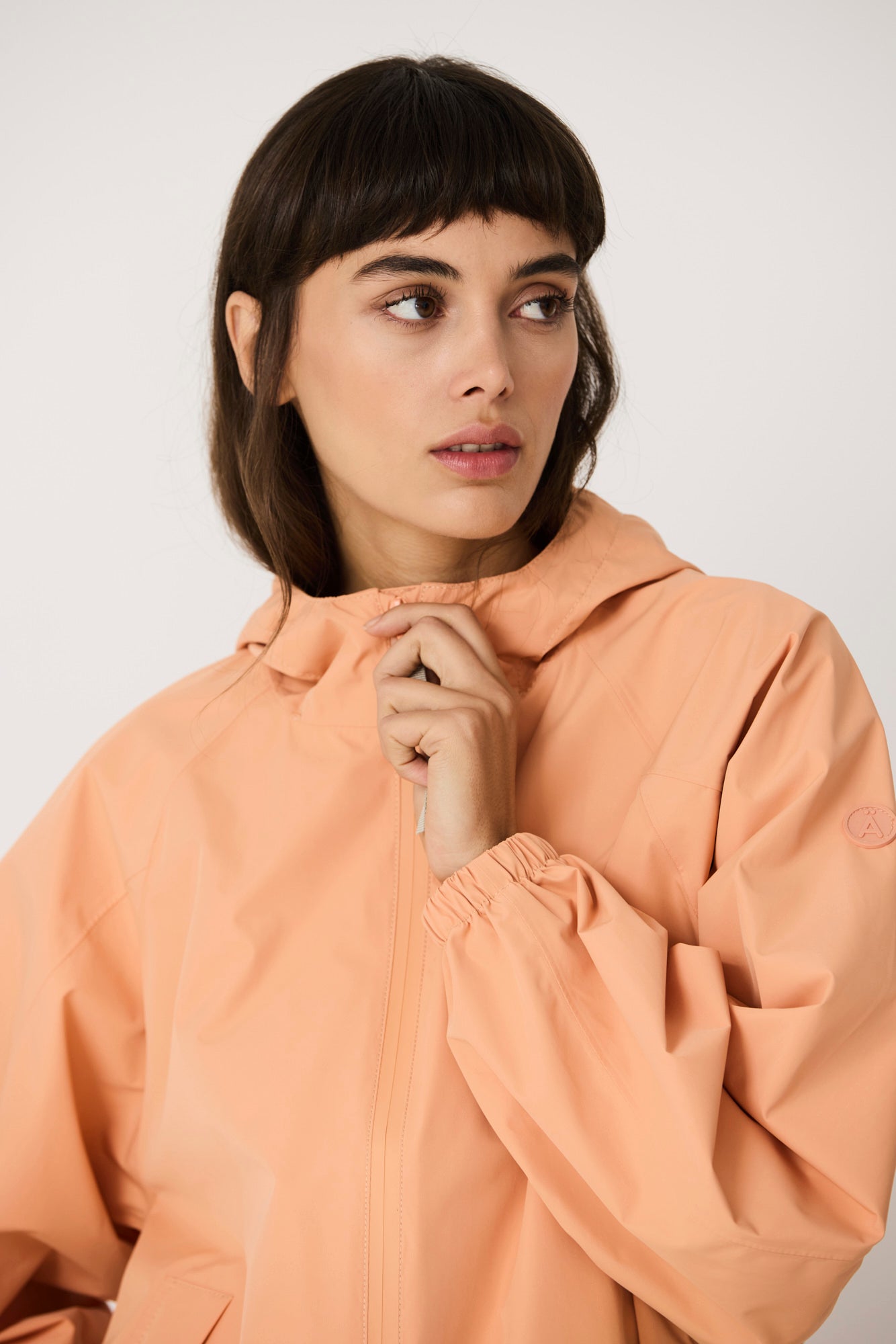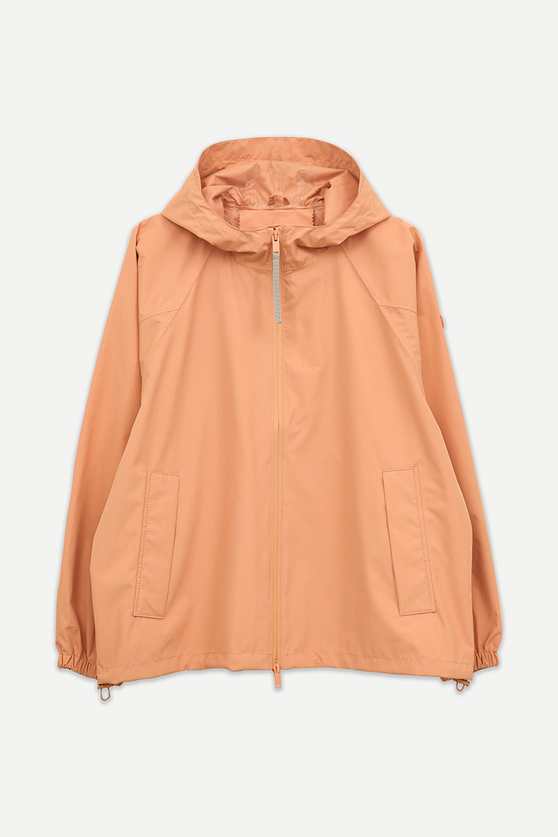 Imiq es un impermeable joven y desenfadado confeccionado en tejido 100 % reciclado, diseñado con una silueta amplia y voluminosa. Los cortes de patronaje en las mangas aportan riqueza y movimiento, mientras que el pliegue en la espalda refuerza su forma relajada. Ligero y transpirable, se completa con una cremallera frontal impermeable y es 100 % waterproof, con todas las costuras selladas, combinando sostenibilidad, estilo y funcionalidad en un diseño fresco y contemporáneo.