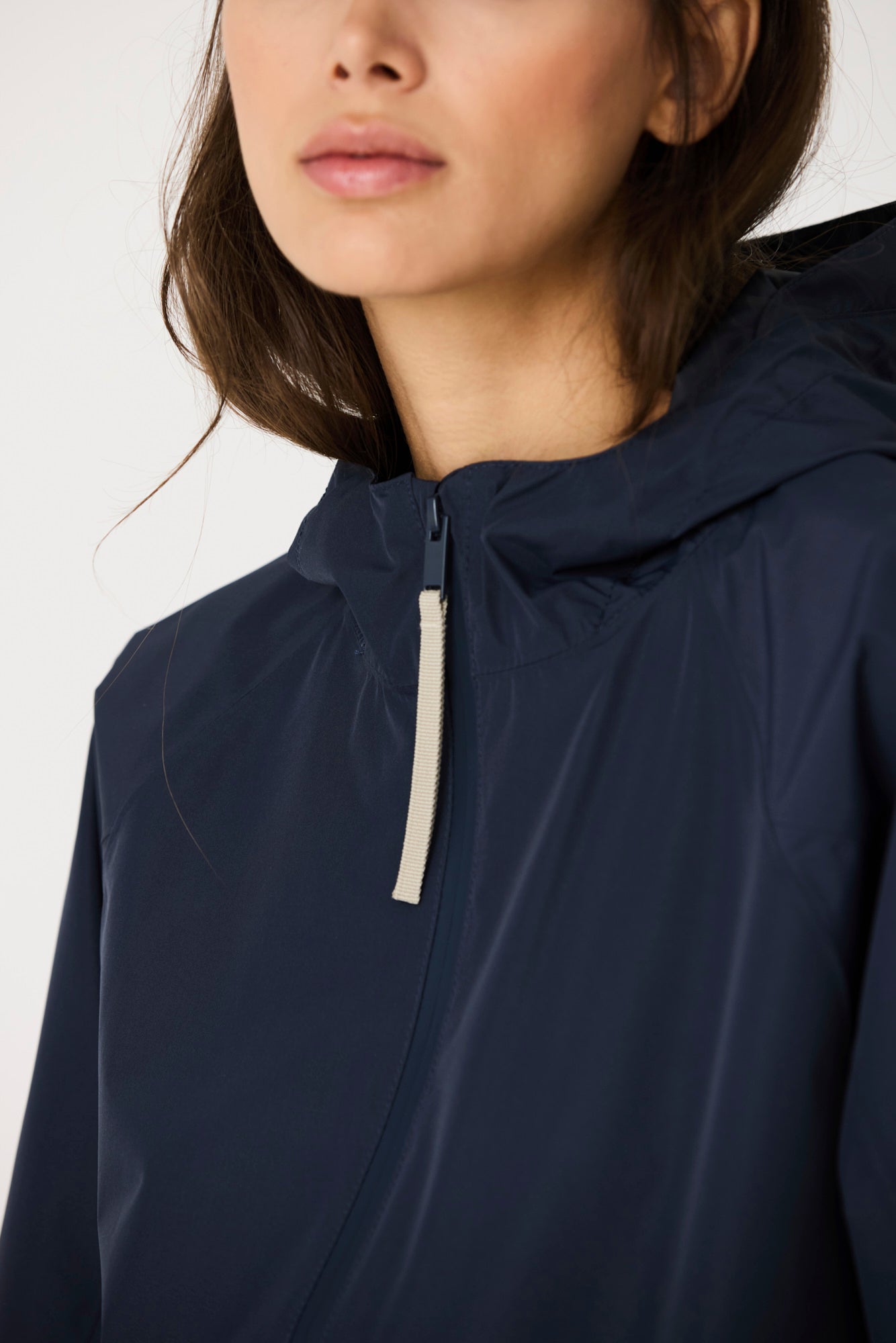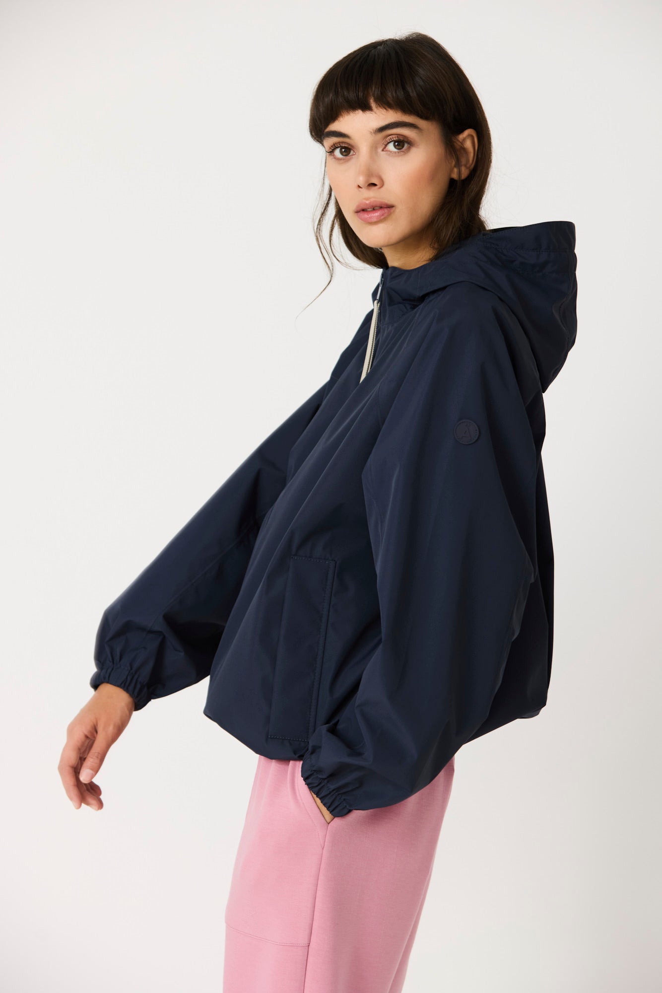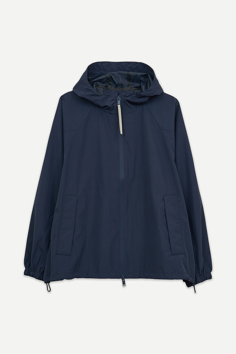 Imiq is a young, playful raincoat crafted from 100% recycled fabric, designed with a generous, voluminous silhouette. Patterned sleeve cuts add richness and movement, while a back pleat enhances its relaxed shape. Lightweight and breathable, it is finished with a front waterproof zipper and is 100% waterproof with all seams taped, bringing together sustainability, style and functionality in a fresh, contemporary design.