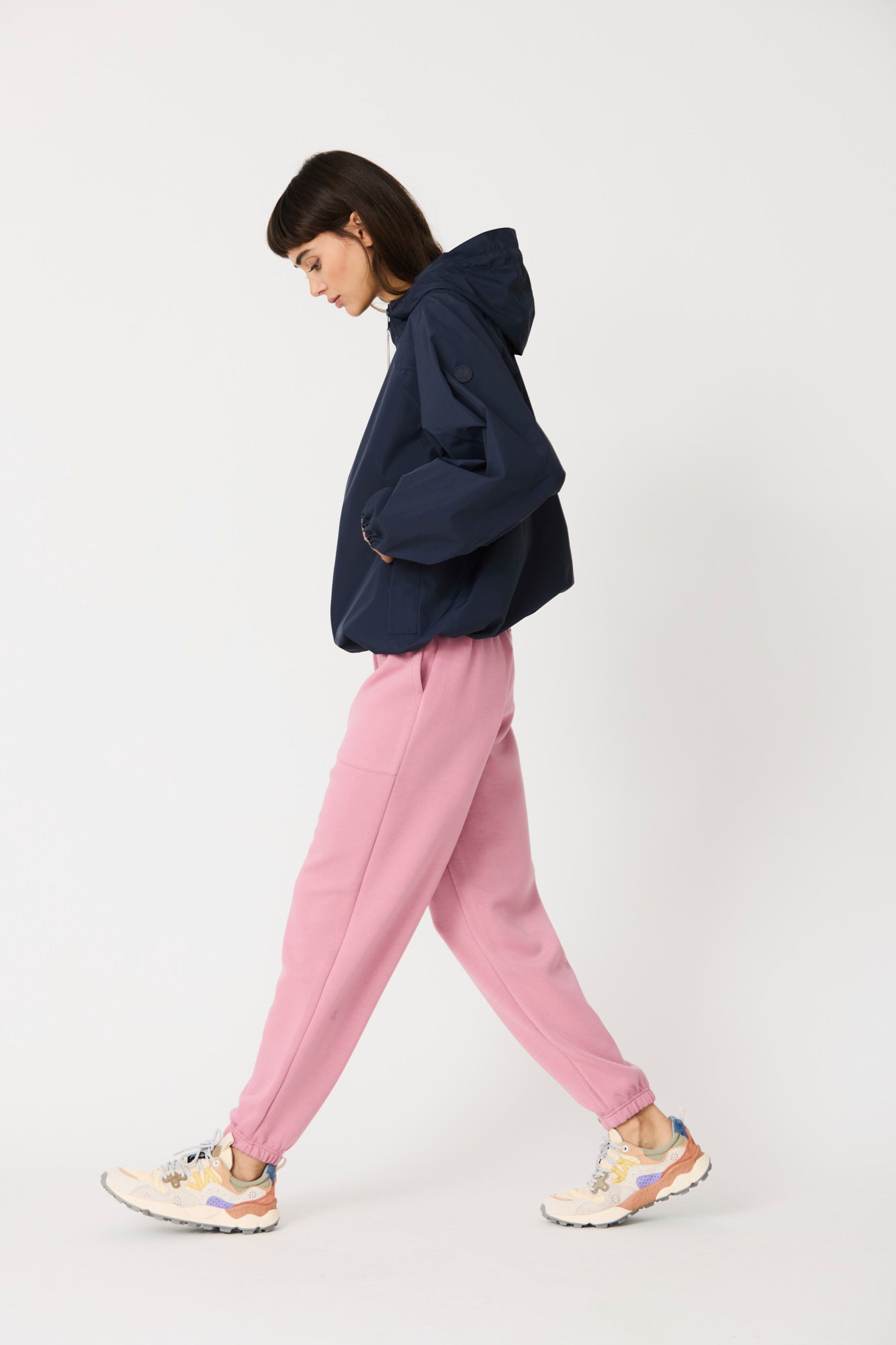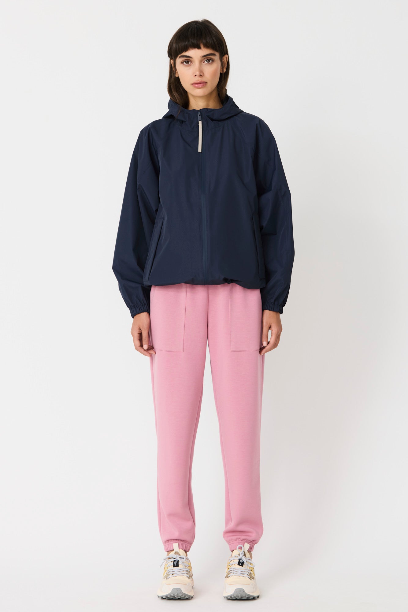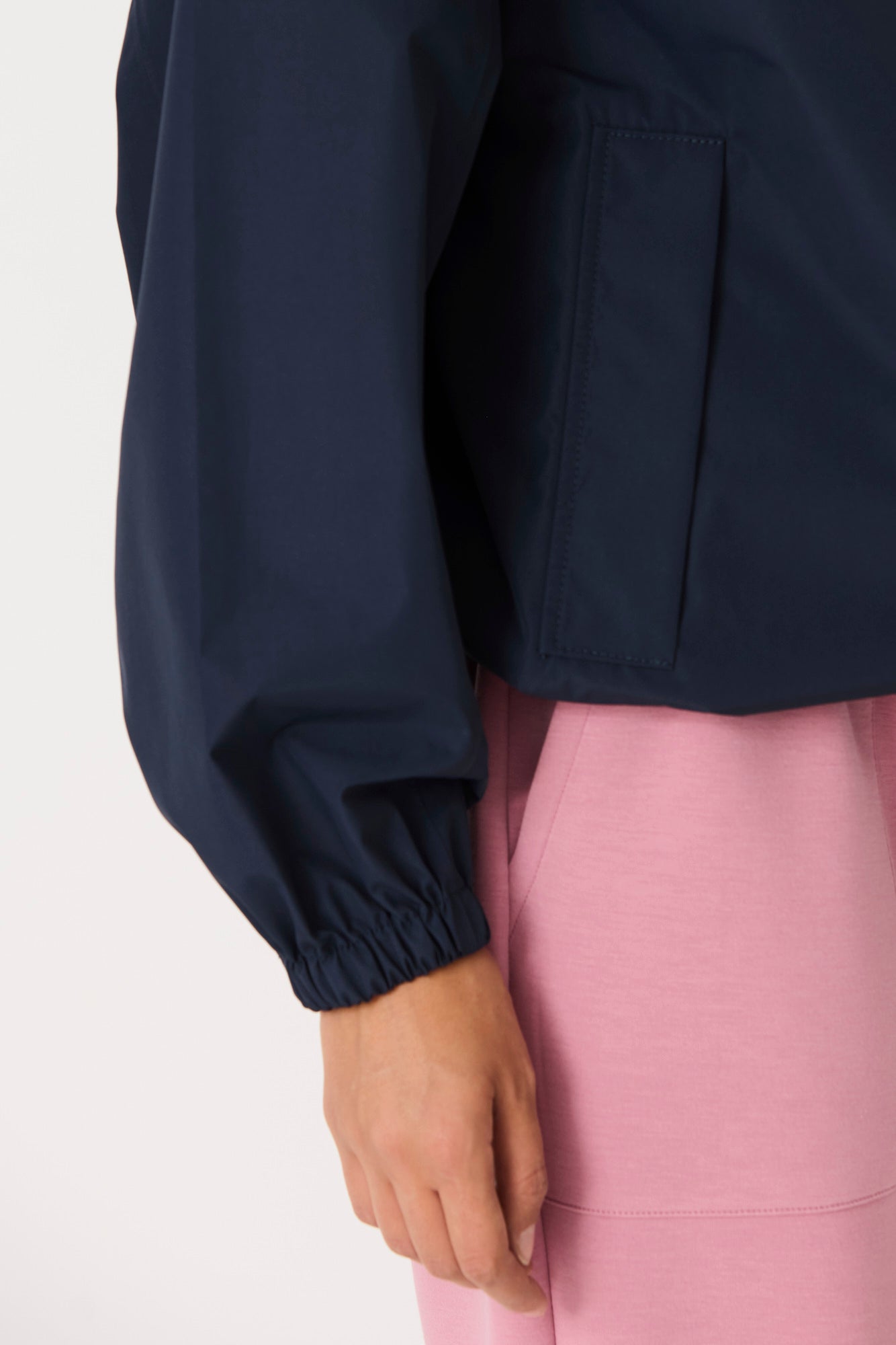 Imiq is a young, playful raincoat crafted from 100% recycled fabric, designed with a generous, voluminous silhouette. Patterned sleeve cuts add richness and movement, while a back pleat enhances its relaxed shape. Lightweight and breathable, it is finished with a front waterproof zipper and is 100% waterproof with all seams taped, bringing together sustainability, style and functionality in a fresh, contemporary design.