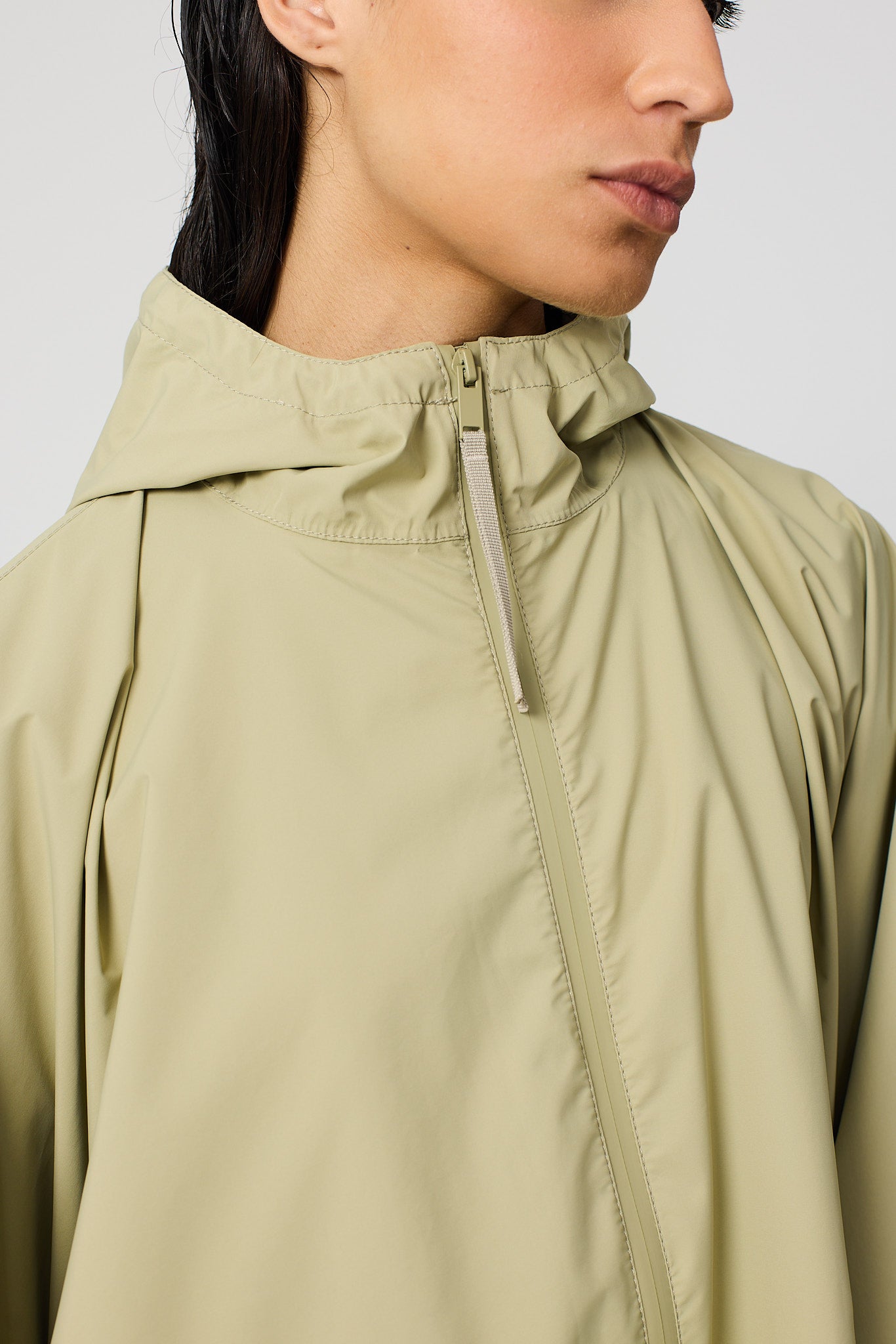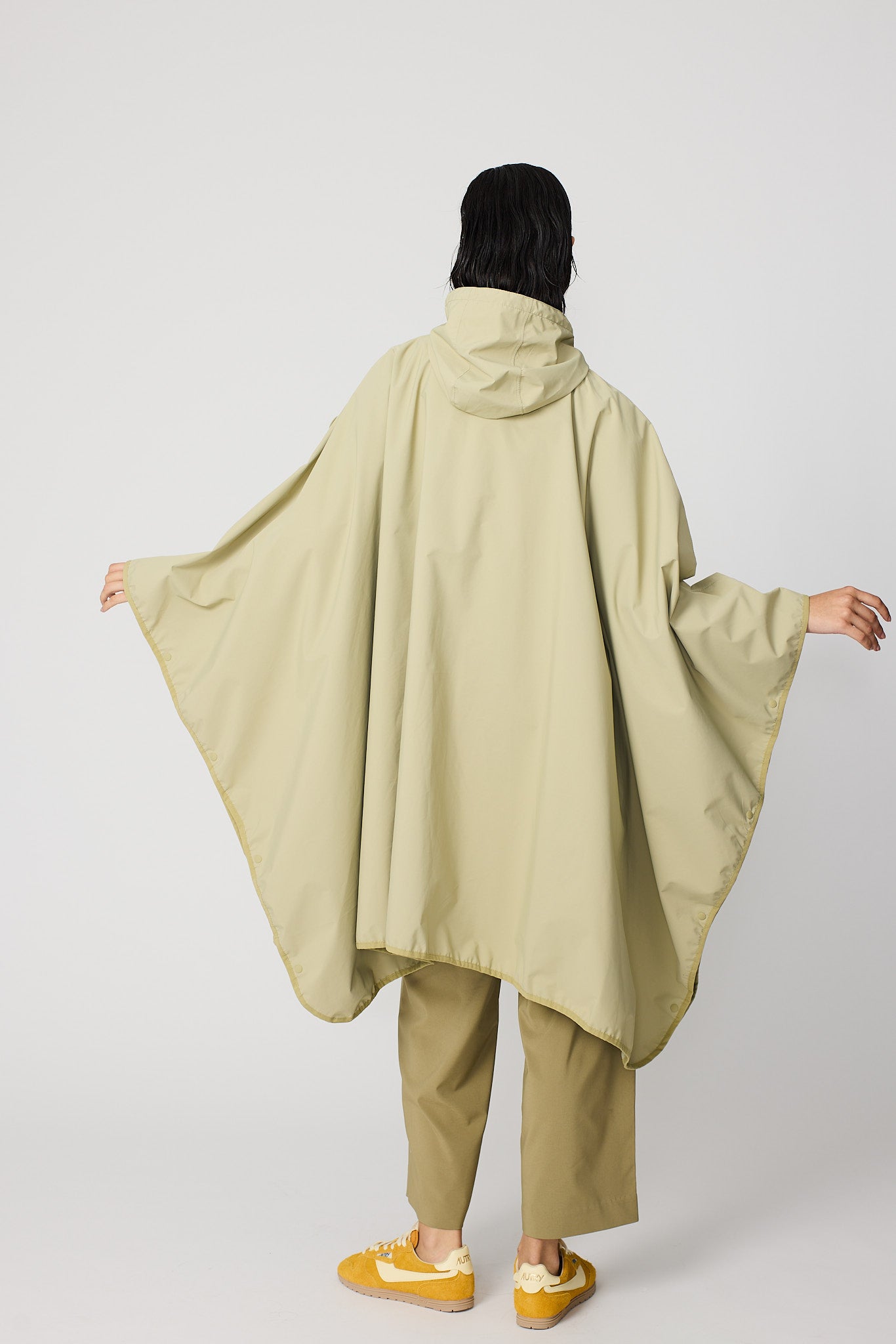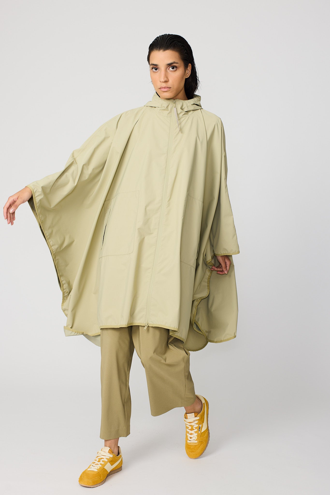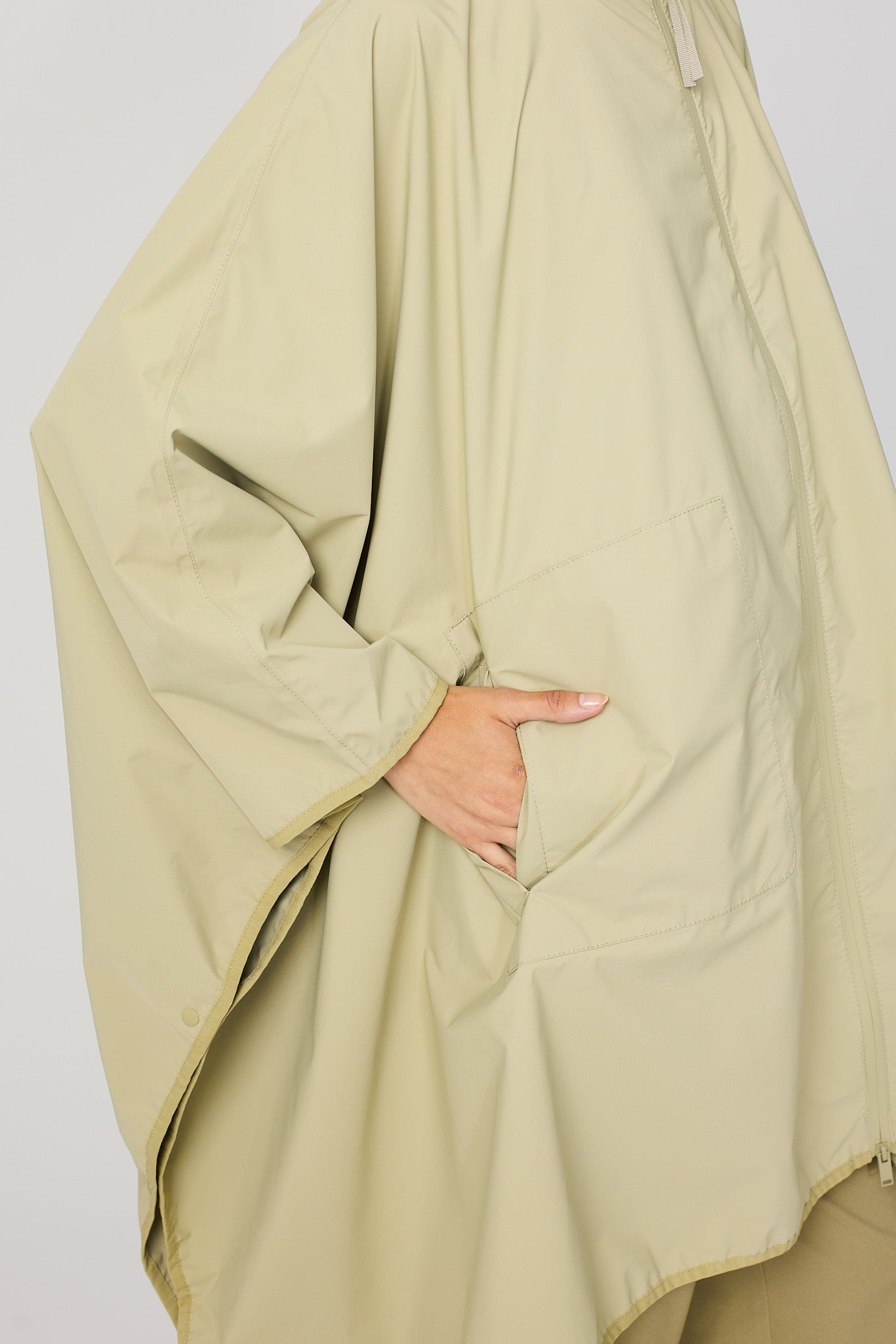 Vesi est une cape moderne et oversize confectionnée en tissu 100 % recyclé et respirant. Conçue comme une pièce unique, elle se superpose facilement sur n'importe quel look. D'une forme affirmée mais d'une sensation légère, c'est une pièce très pratique qui peut être pliée et rangée dans sa propre poche, ce qui la rend facile à transporter partout. Un design frais et contemporain qui allie durabilité, polyvalence et style.