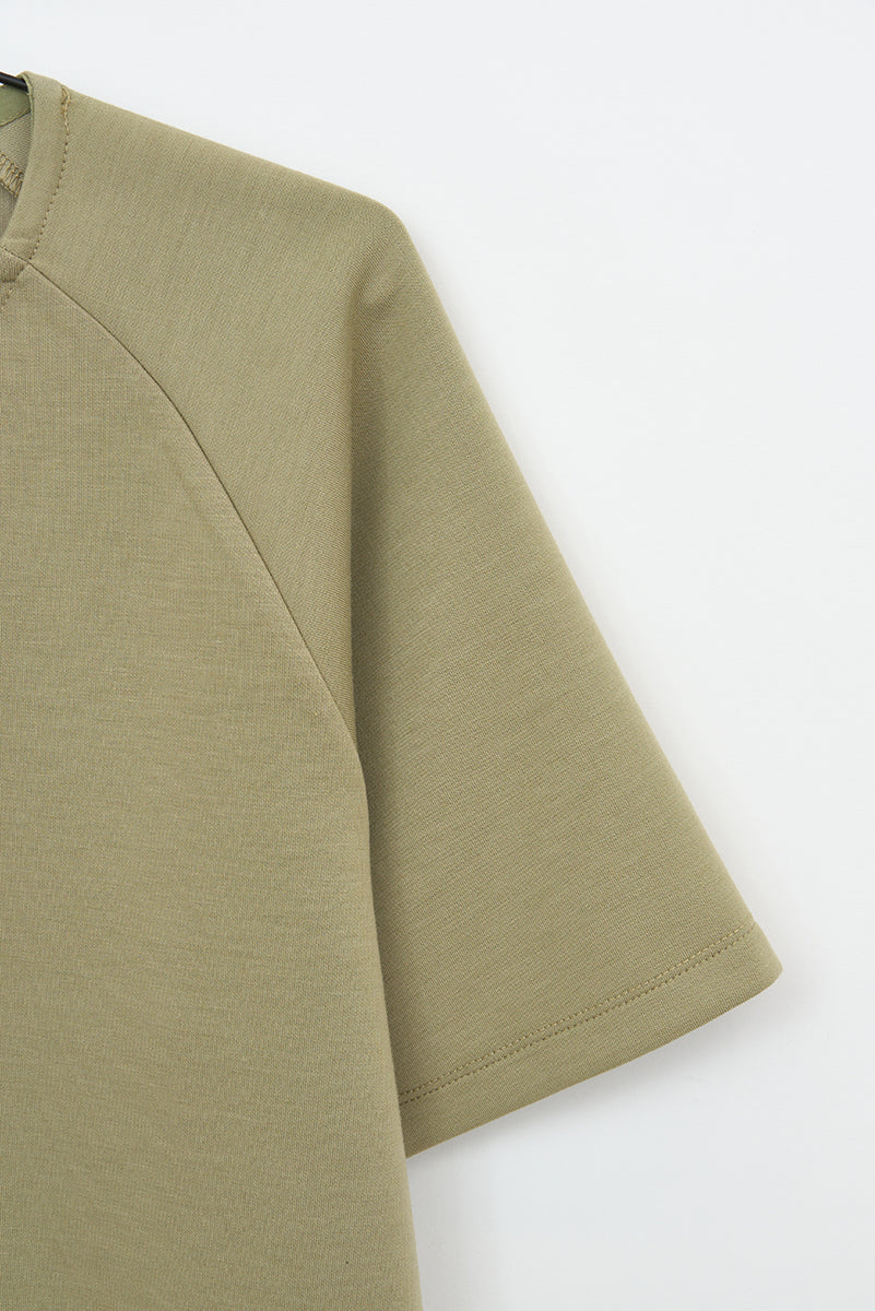 Olufu is a crew neck short sleeve sweater made from quick dry interlock fabric. The material is clean, crisp, and double-faced, which gives the garment a lot of structure and an extra luxurious feel. Details include raglan sleeves, side slits and a tonal logo print. Olufu works as the staple you need to feel confident in every outfit.