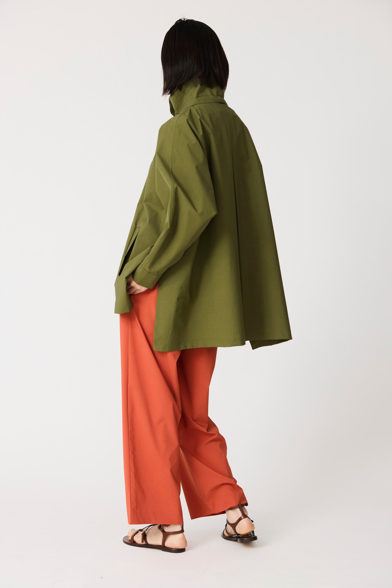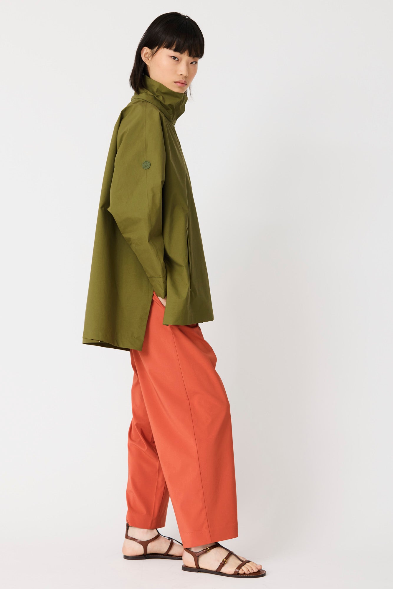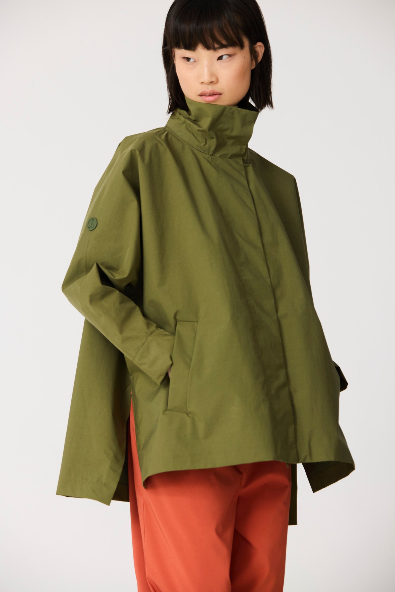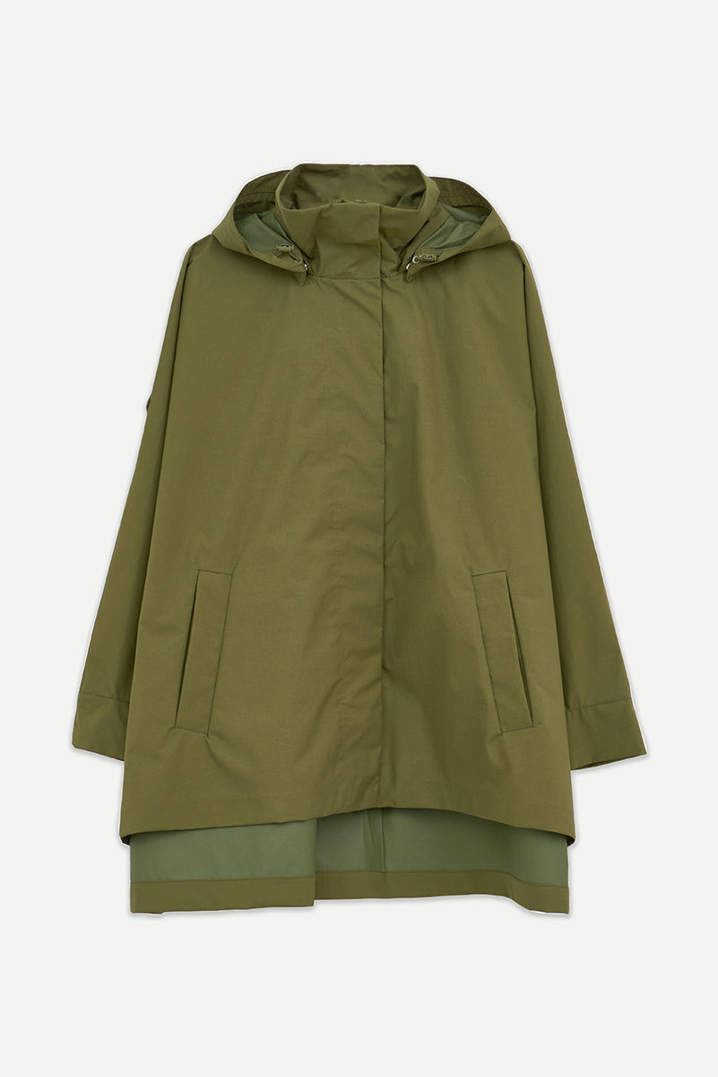 Marelys is a highly stylish jacket crafted from lightweight cotton fabric that brings structure while remaining airy and comfortable. Designed with a Japanese-inspired oversized silhouette and a back pleat, it is a true fashion piece to wear throughout spring, rain or shine. 100% waterproof with all seams taped, it offers added protection as a refined extra. Finished with a detachable hood and clean lines, it delivers a modern, sophisticated look.