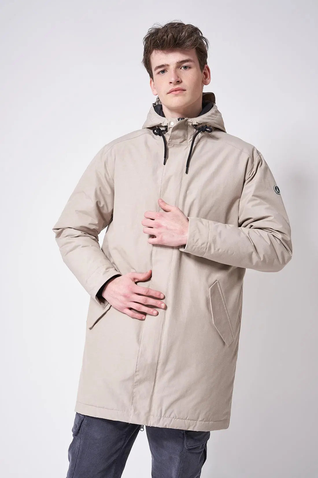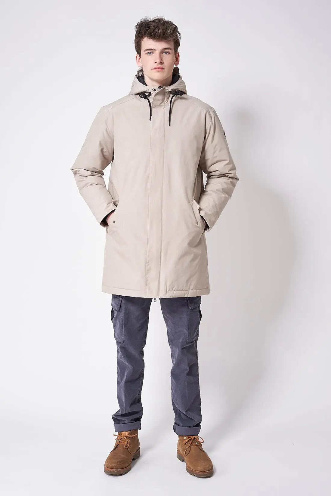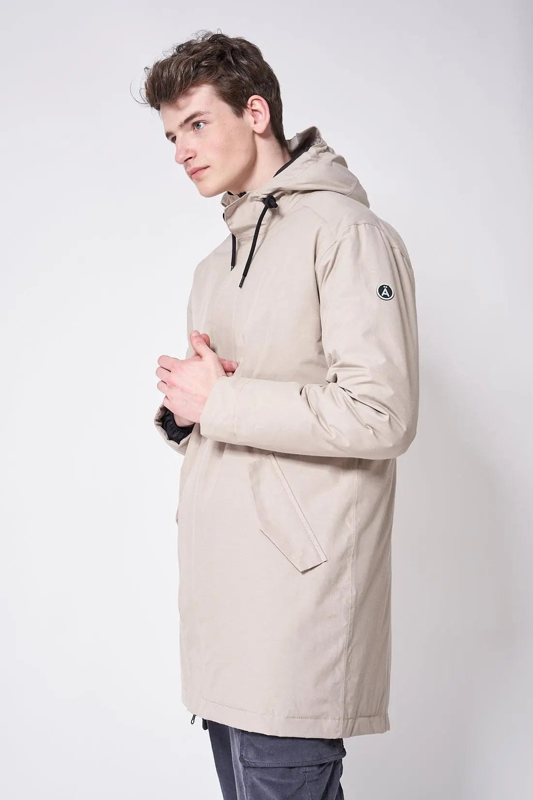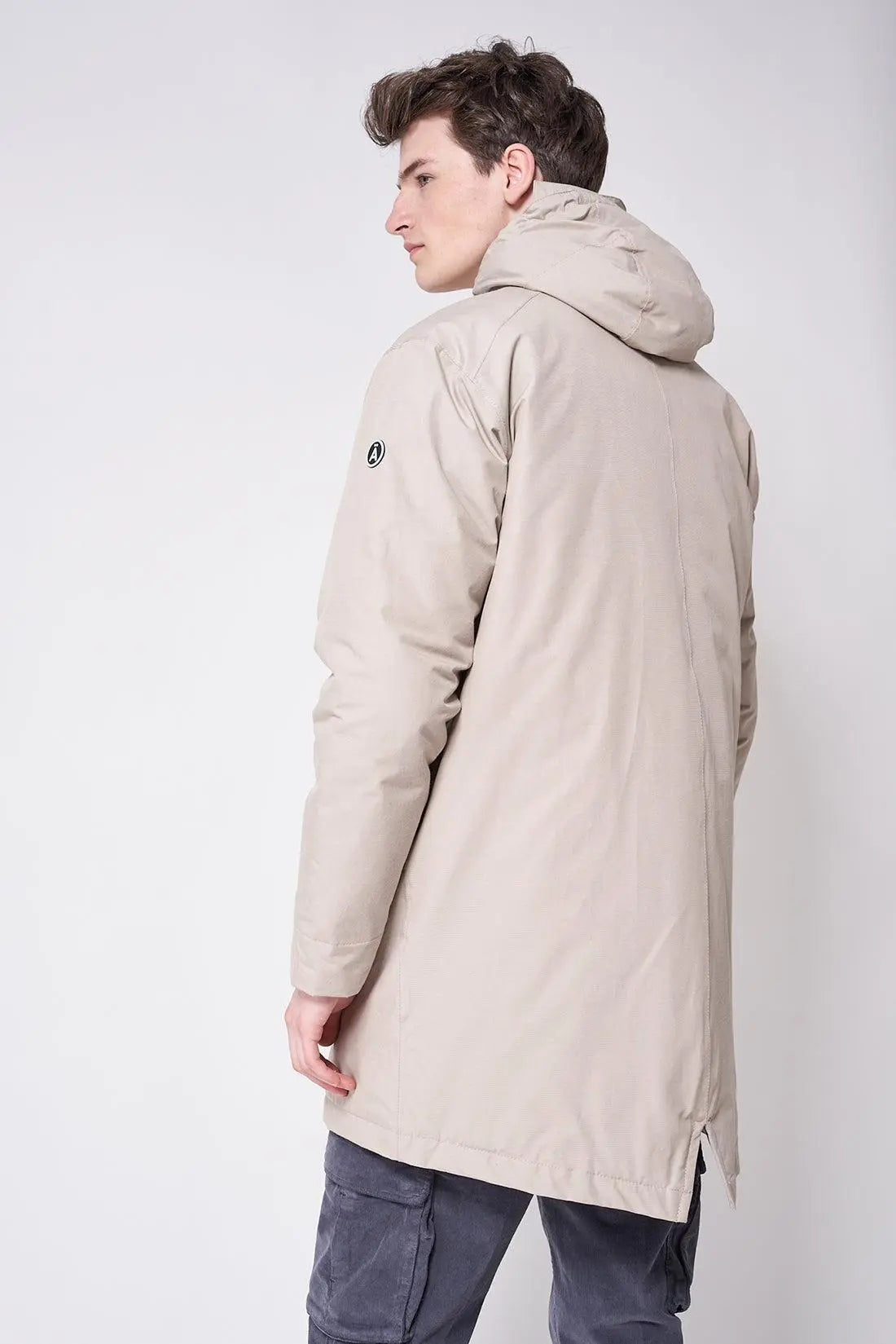 La parka o abrigo impermeable Bingu es un modelo clásico reinterpretado en una sofisticada versión street. Confeccionada con un tejido exterior de mezcla de algodón duradero y un forro de plumón de algodón, cuenta con todas las costuras selladas para una protección superior. Con un corte regular y un estilo depurado, presenta bolsillos con solapa y una abertura trasera con cordón ajustable.