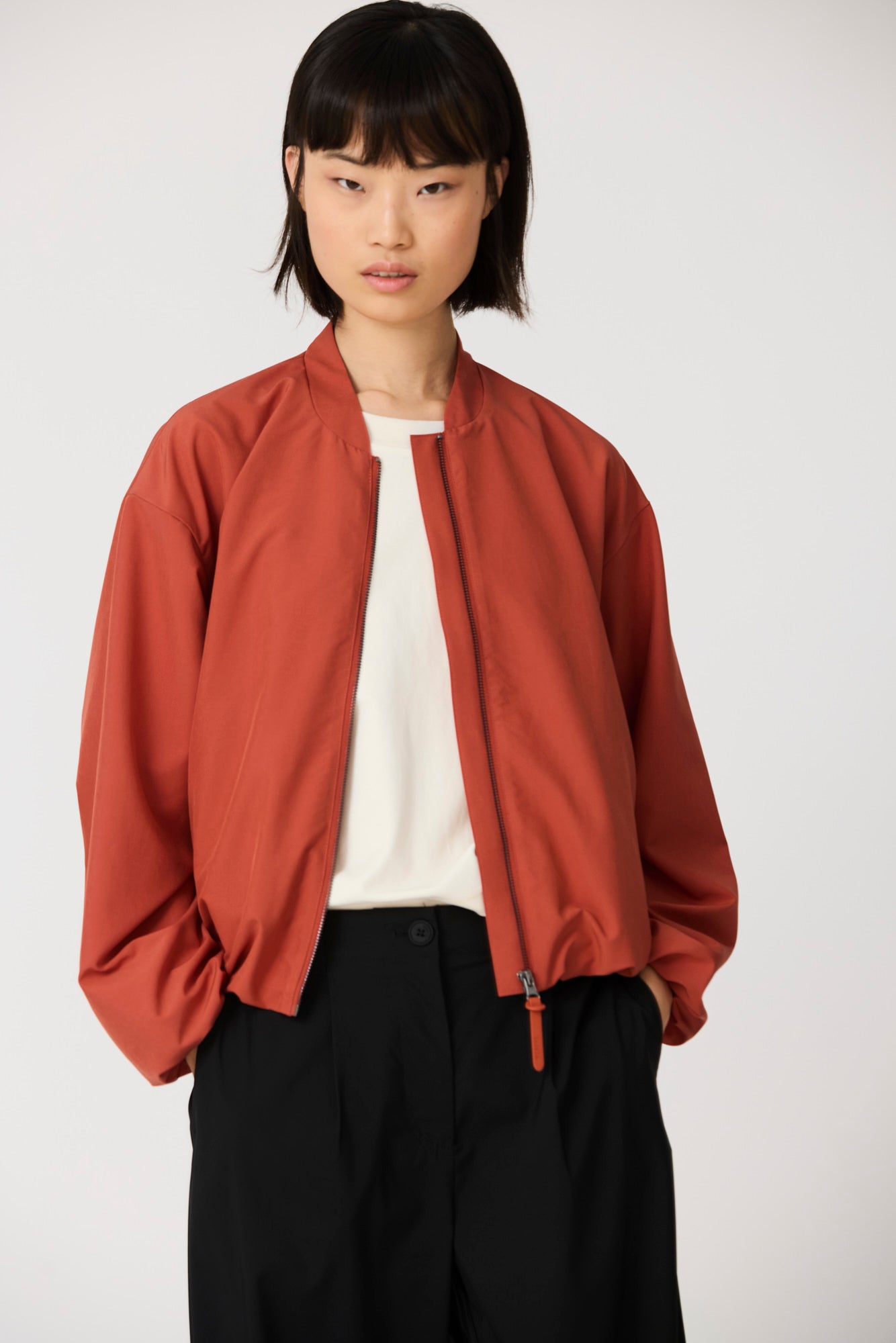 Corte regular con volumen, con hombros relajados.