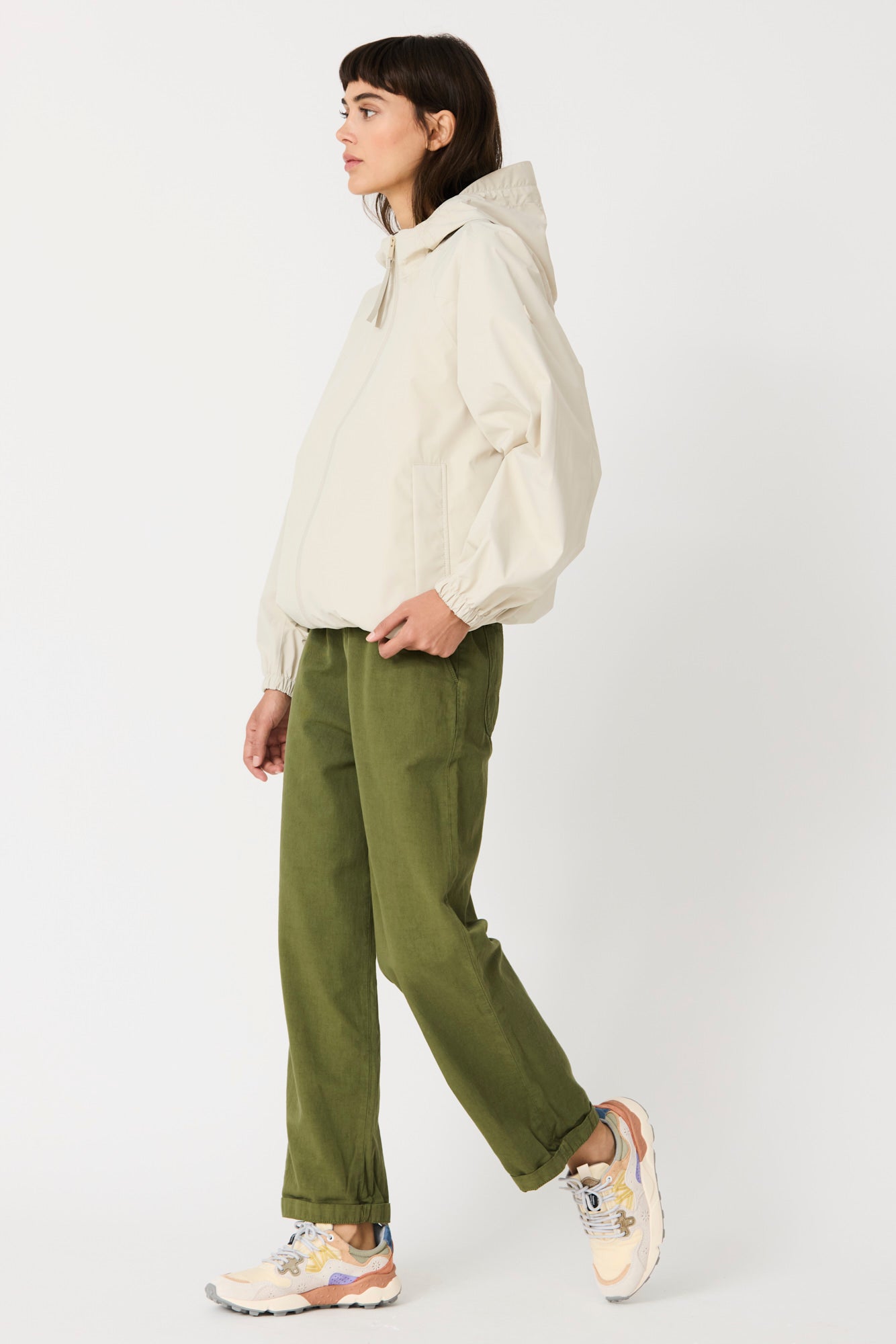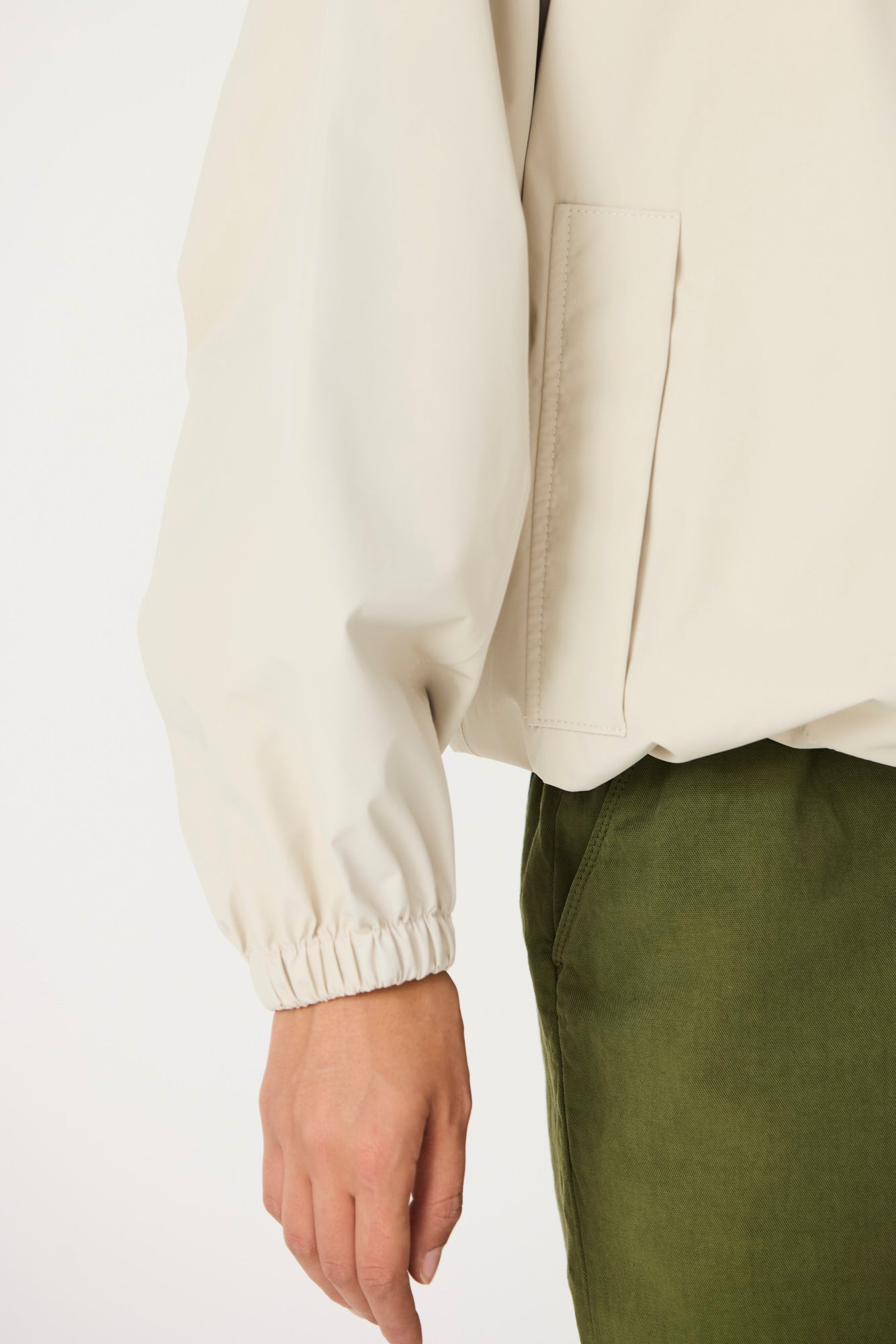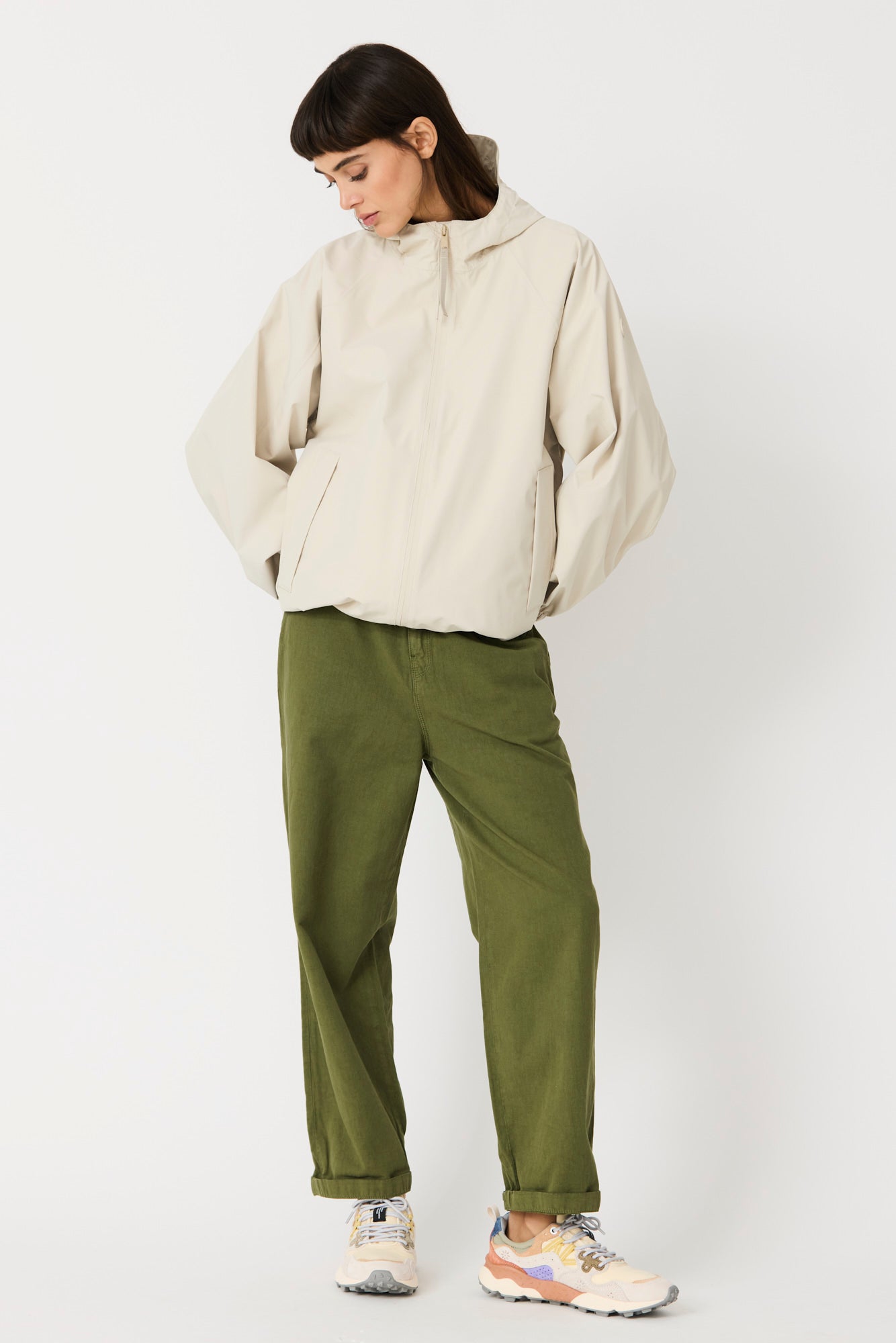 Imiq es un impermeable joven y desenfadado confeccionado en tejido 100 % reciclado, diseñado con una silueta amplia y voluminosa. Los cortes de patronaje en las mangas aportan riqueza y movimiento, mientras que el pliegue en la espalda refuerza su forma relajada. Ligero y transpirable, se completa con una cremallera frontal impermeable y es 100 % waterproof, con todas las costuras selladas, combinando sostenibilidad, estilo y funcionalidad en un diseño fresco y contemporáneo.